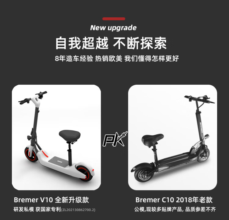 Bremer electric scooter, foldable electric scooter, small mount, adult two-wheeled lithium battery portable scooter V10 36V gray/listed brand lithium battery/range 40-50KM
