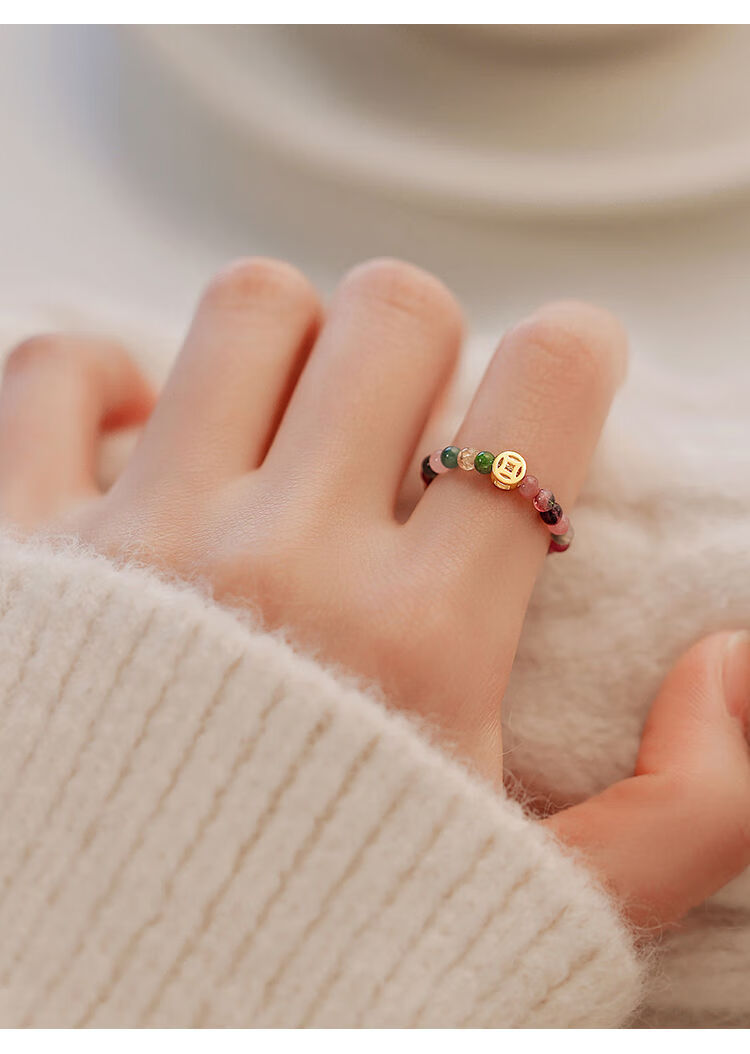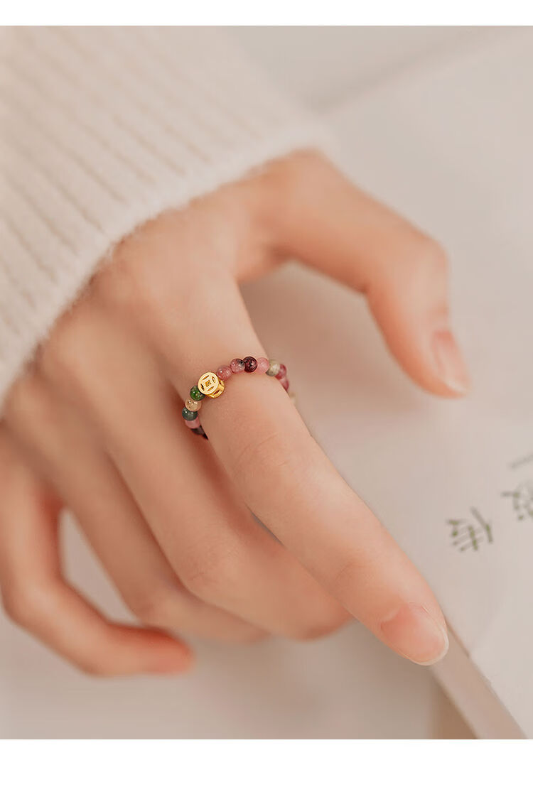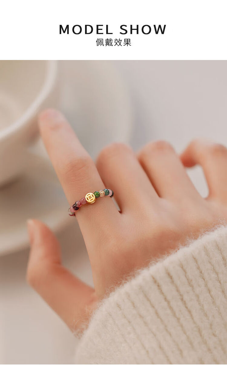 Henglijia XIGN tourmaline ring for women 925 sterling silver ring ring light luxury niche design closed ring high-end index finger ring 925 silver tourmaline ring