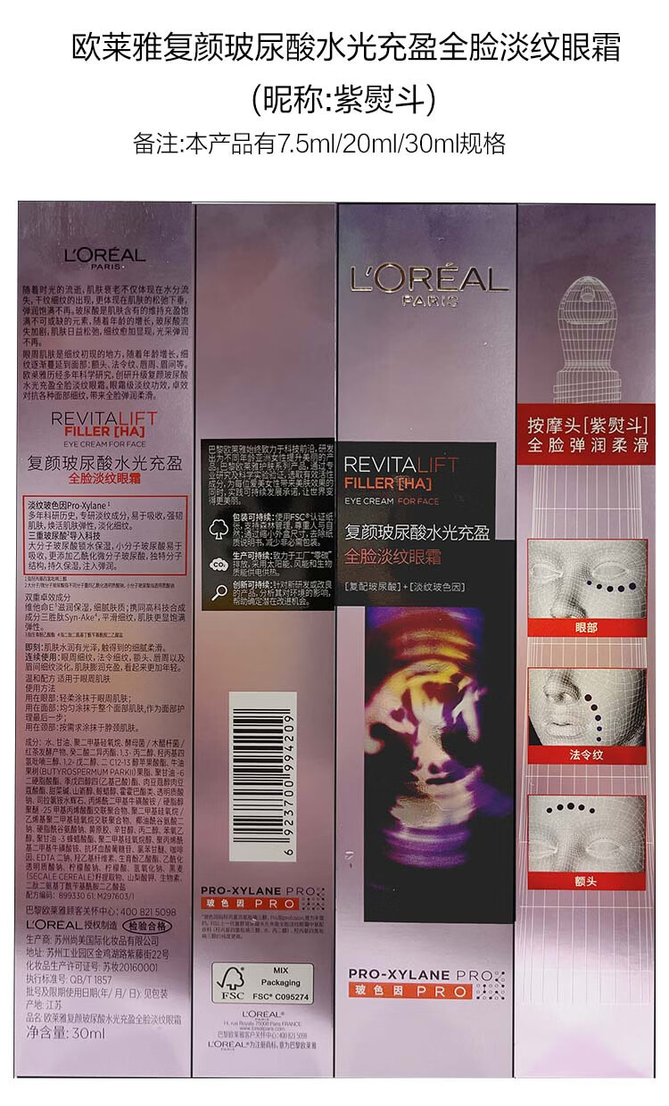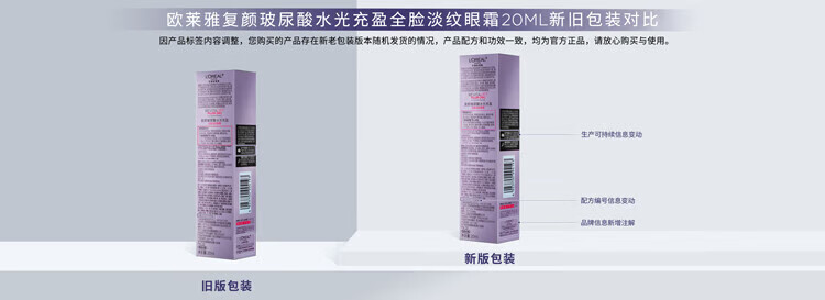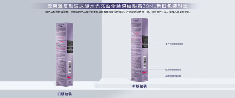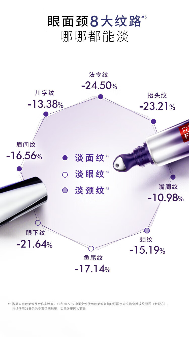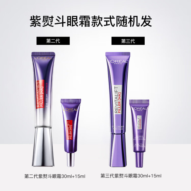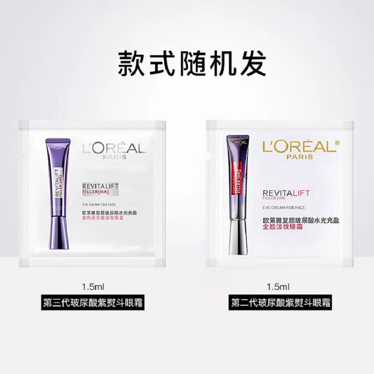 欧莱雅紫熨斗全脸淡纹眼霜女化妆品小样眼袋黑眼圈护肤品第二代玻尿酸 【共10.5ml】眼霜1.5ml*7+赠手霜