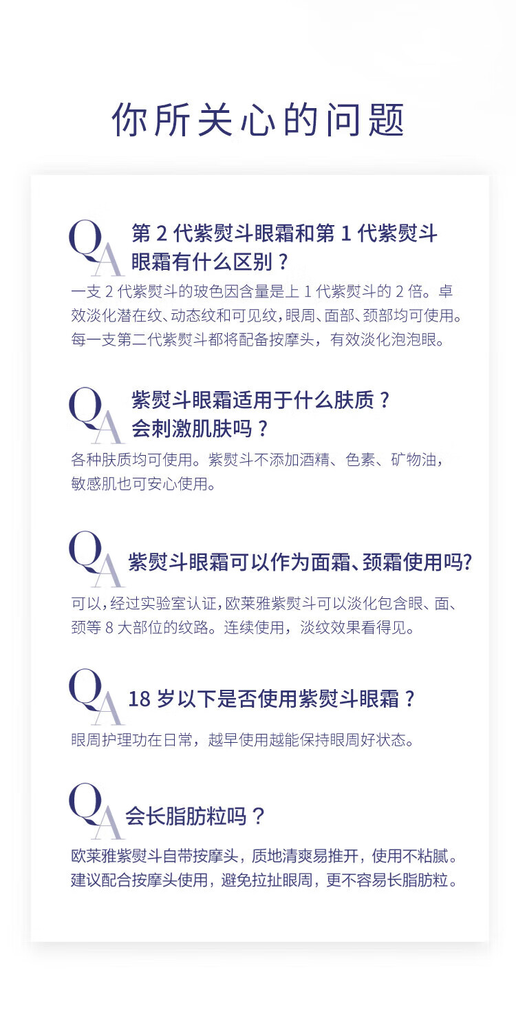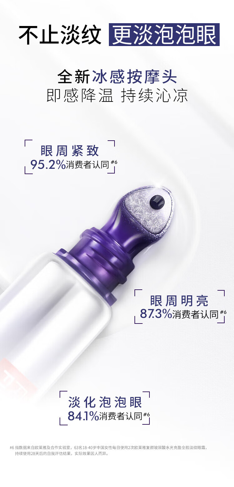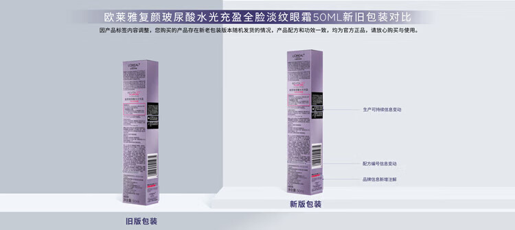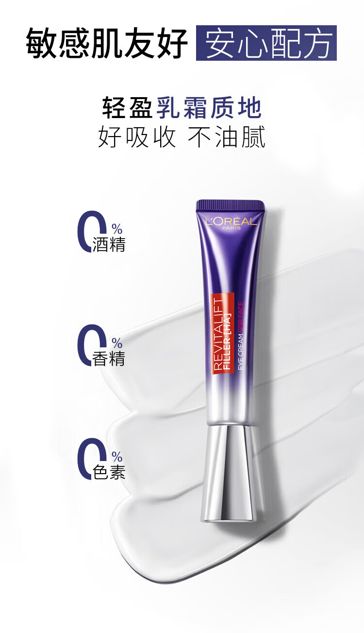 欧莱雅紫熨斗全脸淡纹眼霜女化妆品小样眼袋黑眼圈护肤品第二代玻尿酸 【共10.5ml】眼霜1.5ml*7+赠手霜