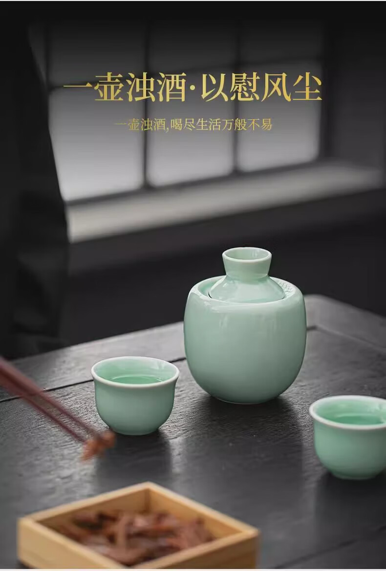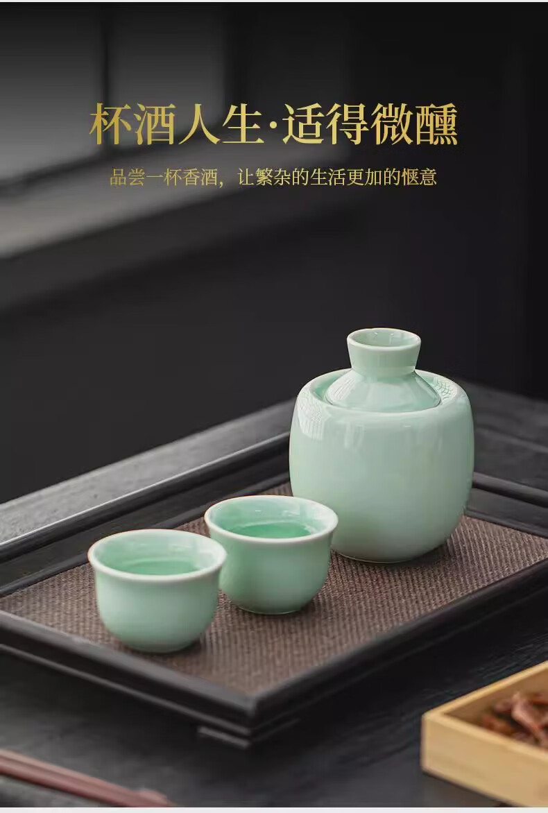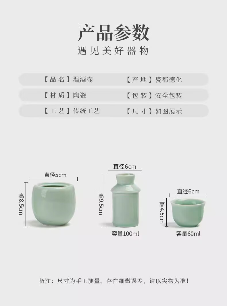Wine warmer, household ceramic wine warmer, two liang yellow rice wine hotpot, old-fashioned half Jin Jin equal to 0.5 kg, warm wine set, blue and white white wine cup, ceramic wine warmer, plum green style