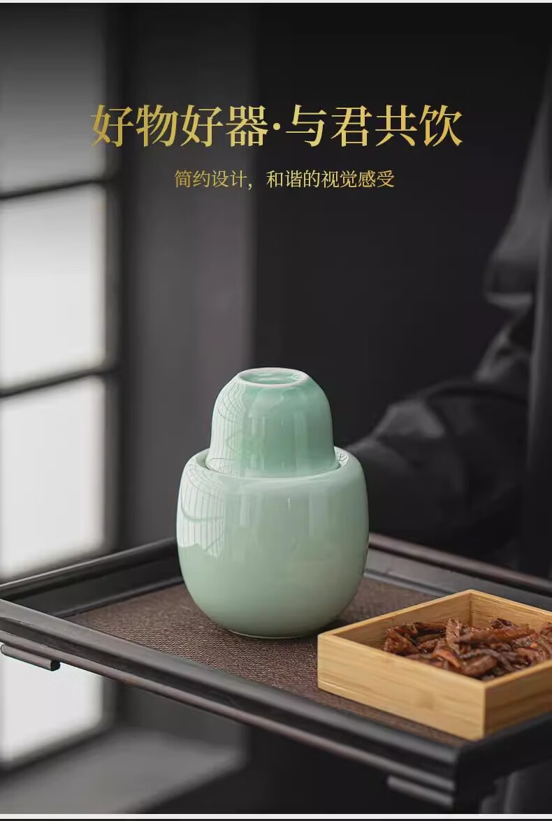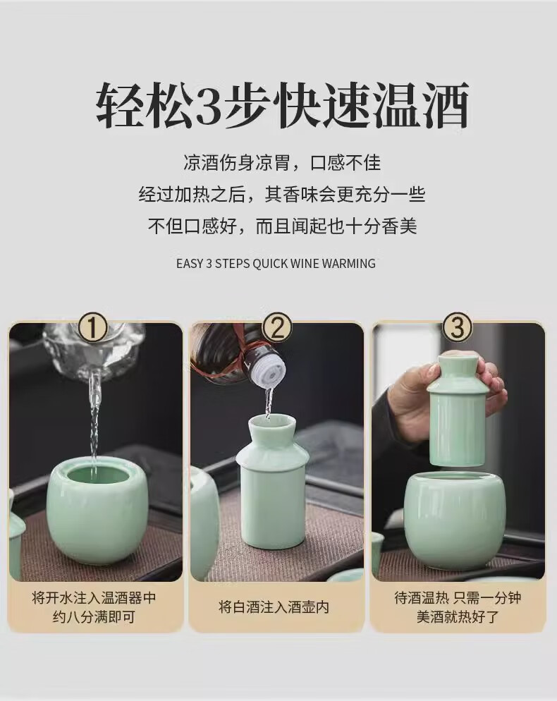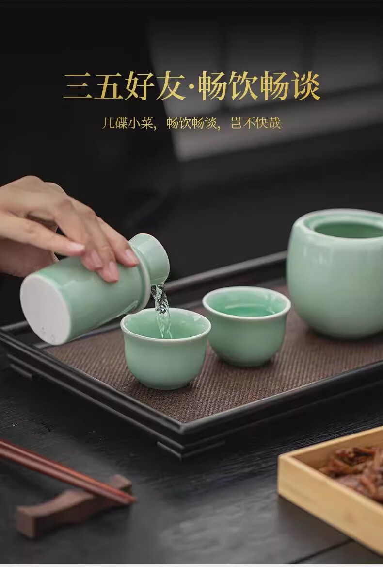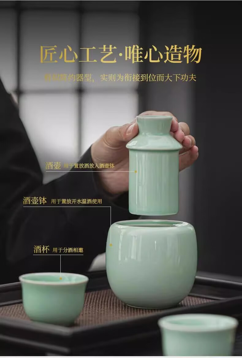 Wine warmer, household ceramic wine warmer, two liang yellow rice wine hotpot, old-fashioned half Jin Jin equal to 0.5 kg, warm wine set, blue and white white wine cup, ceramic wine warmer, plum green style
