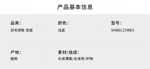 YONEX/Yonex SHBELZ3WEX wide version stable badminton shoes for men and women yy light blue 40