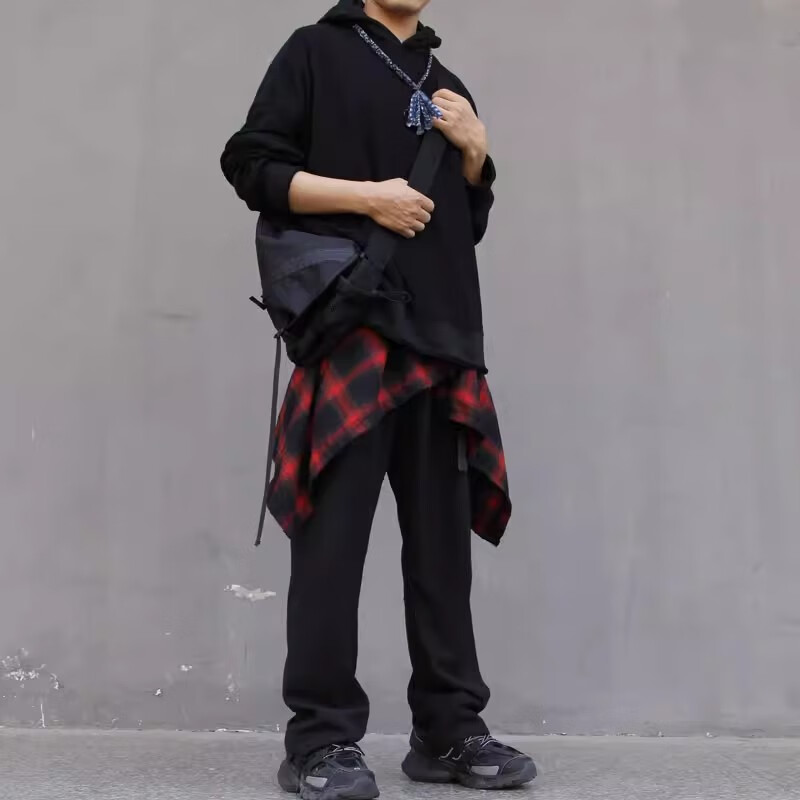 JIOESC plaid skirt butt curtain for women one piece small butt curtain autumn and winter wear artifact layered with pants high street hip-hop male red and black small grid regular one size fits all (80-180Jin Jin is equal to 0.5 kg)