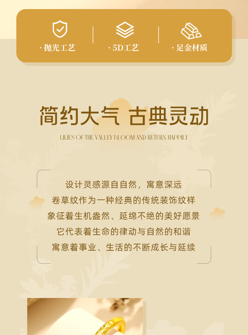 China Gold (CHINA GOLD) Curly Grass Pattern Gold Bracelet Women's Foot Gold Bracelet Birthday Gift for Girlfriend and Wife Ring Top 54 Gold Weight Approximately 5.2g Gold Bracelet