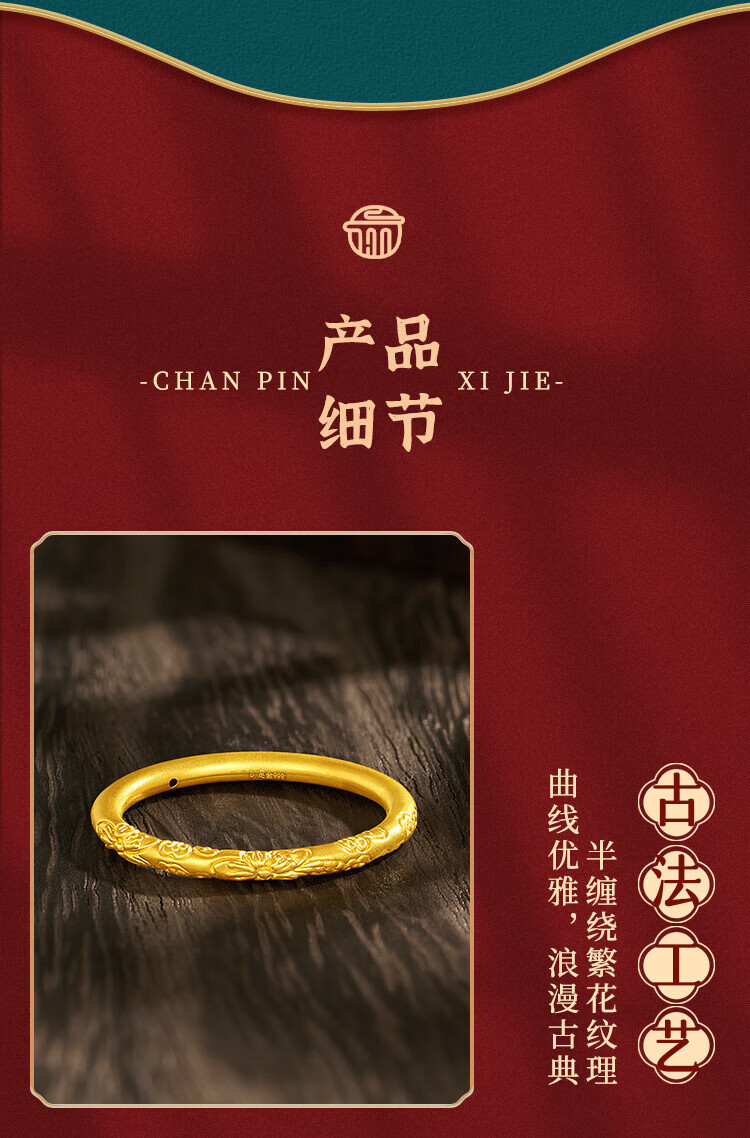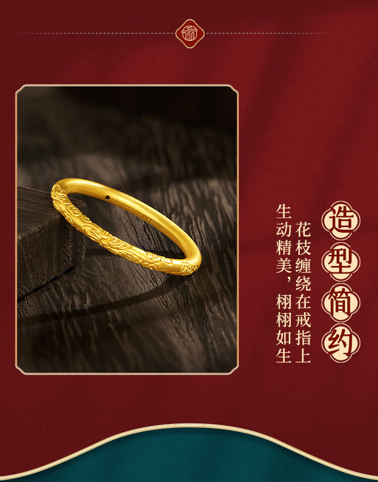 Pupan Lao Phoenix Gold Store Gold Sakura 999 Gold Ring Bauhinia Ring Women's Ancient Relief Ring Ring 520 Cherry Blossom Ring No. 15 Lao Fengxiang's Same Style 1.23g Lao Fengxiang's Same Style