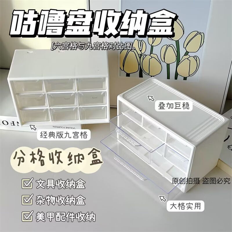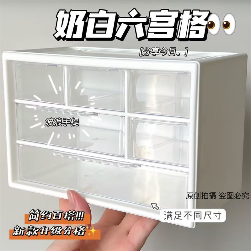 Desktop storage box student dormitory ins six transparent storage box drawer-type multi-grid storage box storage artifact activity drawer-type six-grid ivory white Specifications above follow the collection of the best products