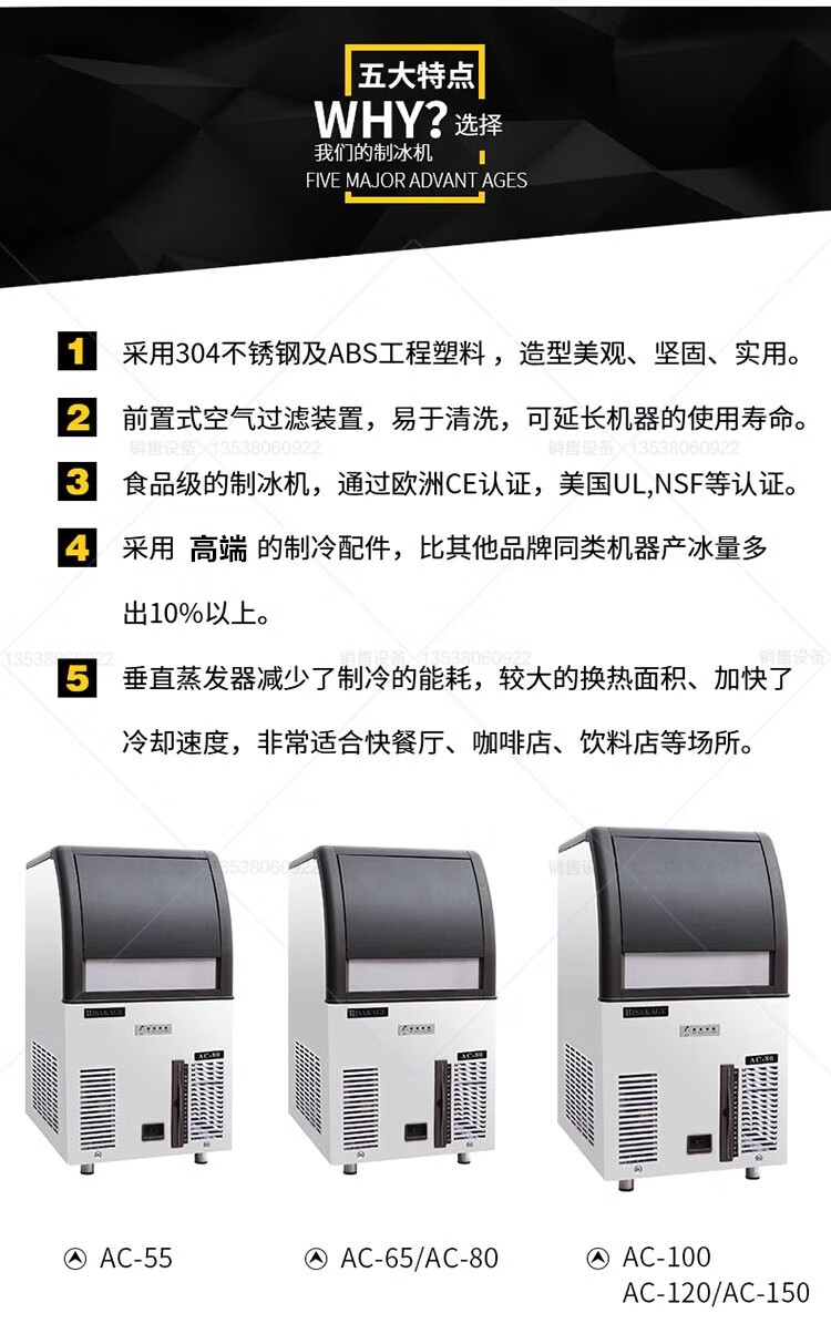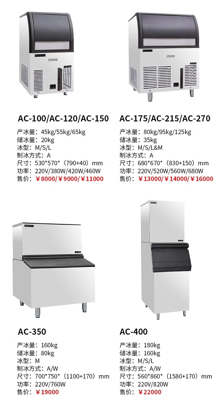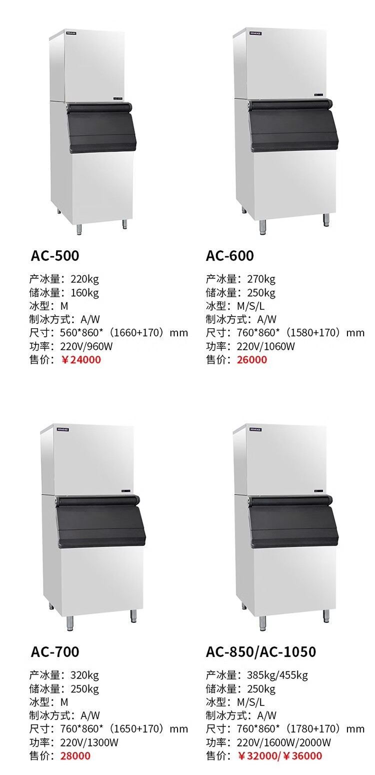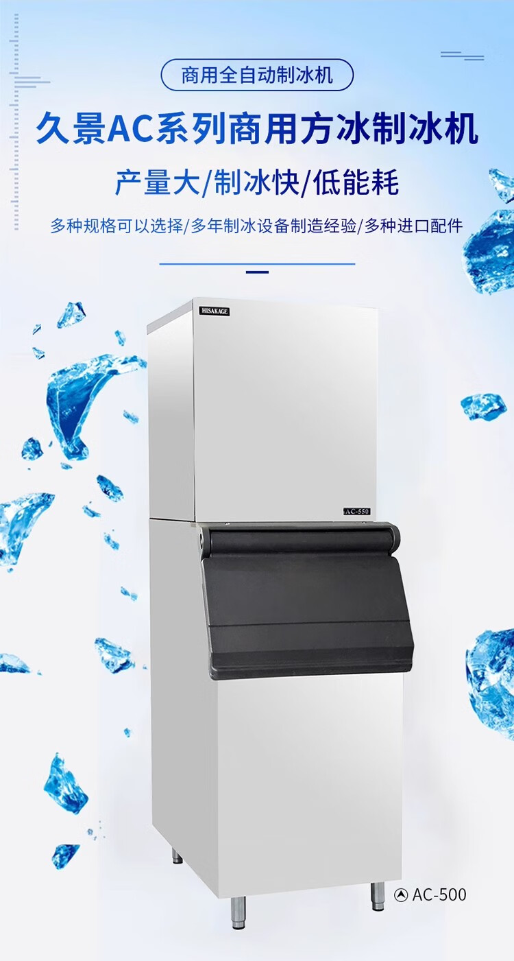 HISAKAGE Jiujing ice machine commercial milk tea coffee fully automatic 300/500kg large bar KTV edible AC-650X 300KG (square ice) AC/SC/JM/EC series ice type water-cooled