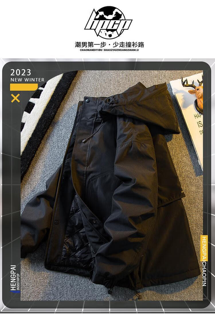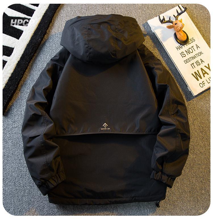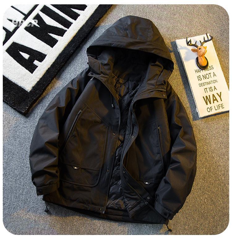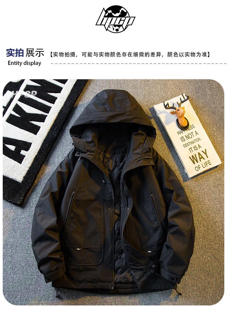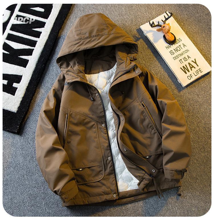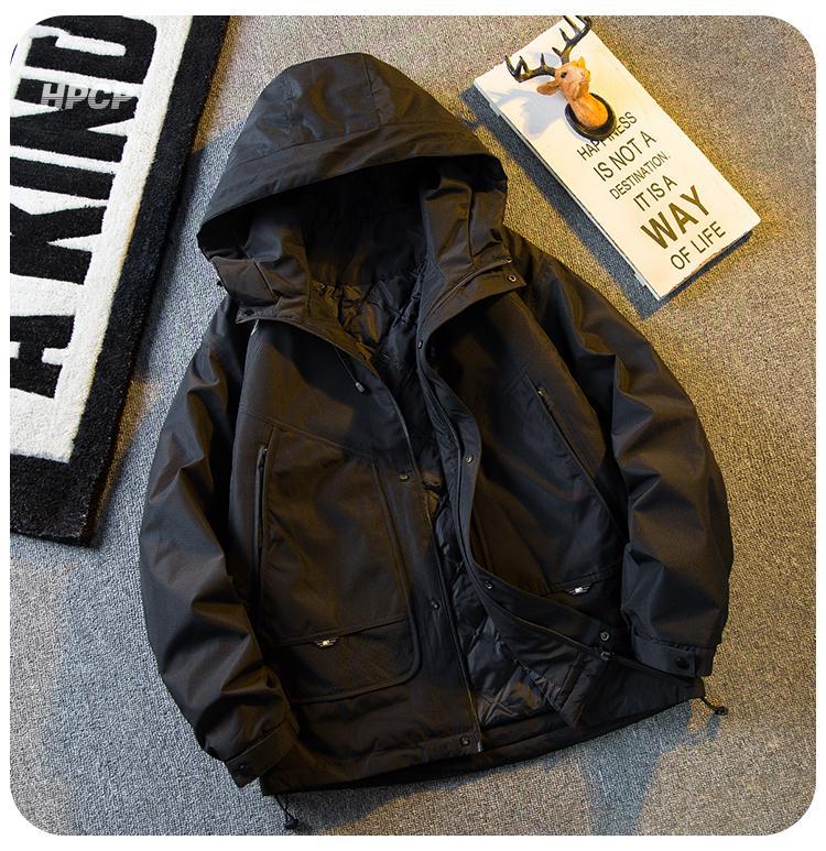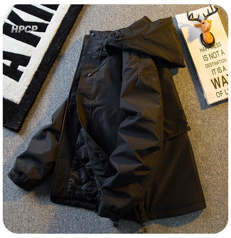 Kuraishi Kazuki trendy brand winter cotton clothing for men, thickened and velvet, outdoor warm and windproof work clothes, warm cotton coat jacket for men, black XL