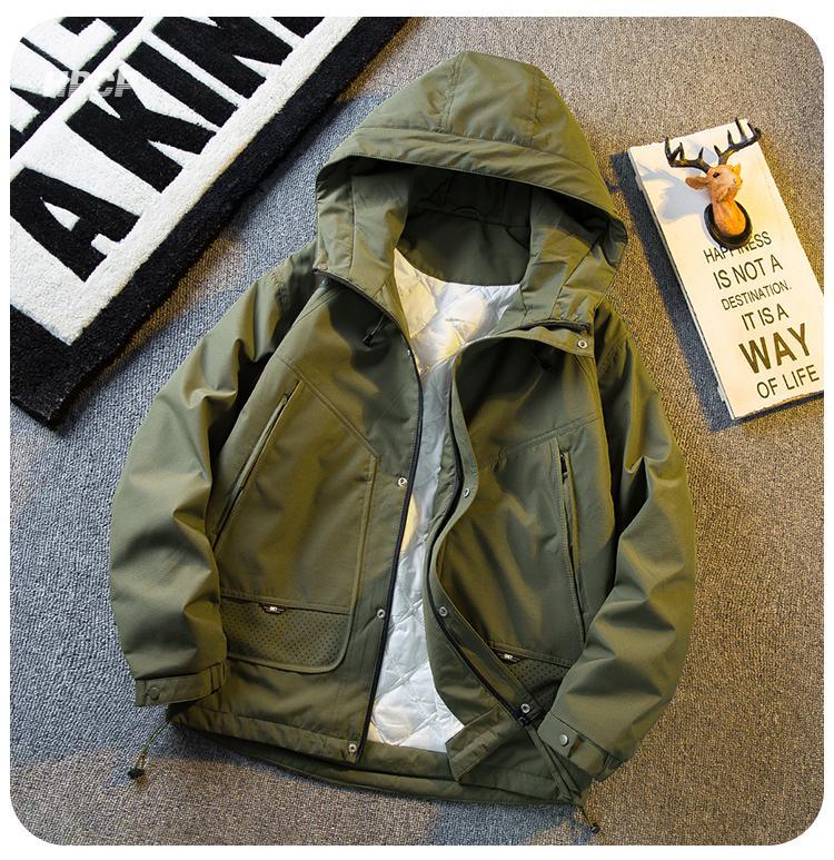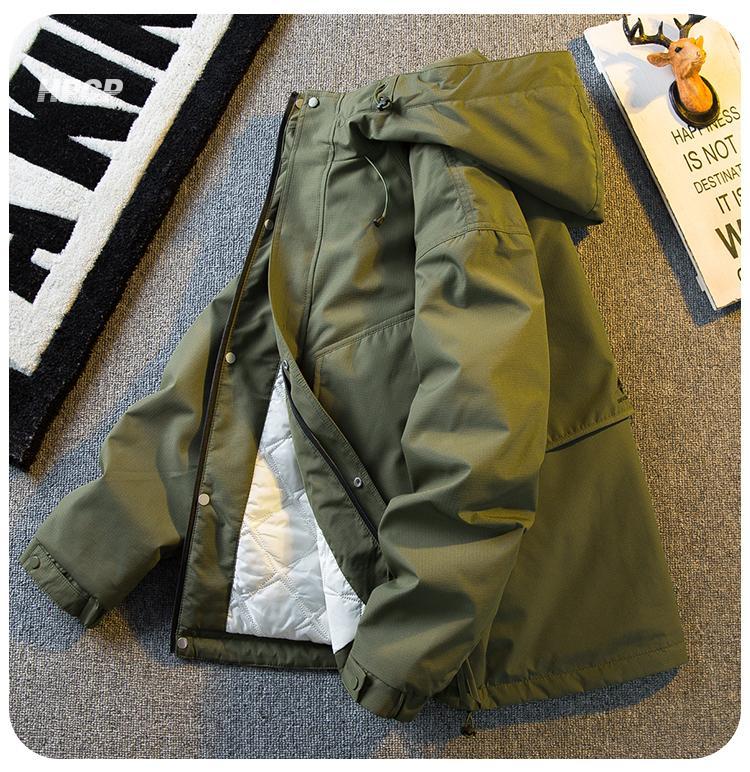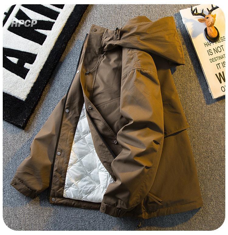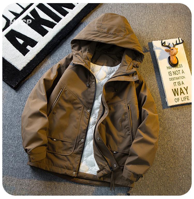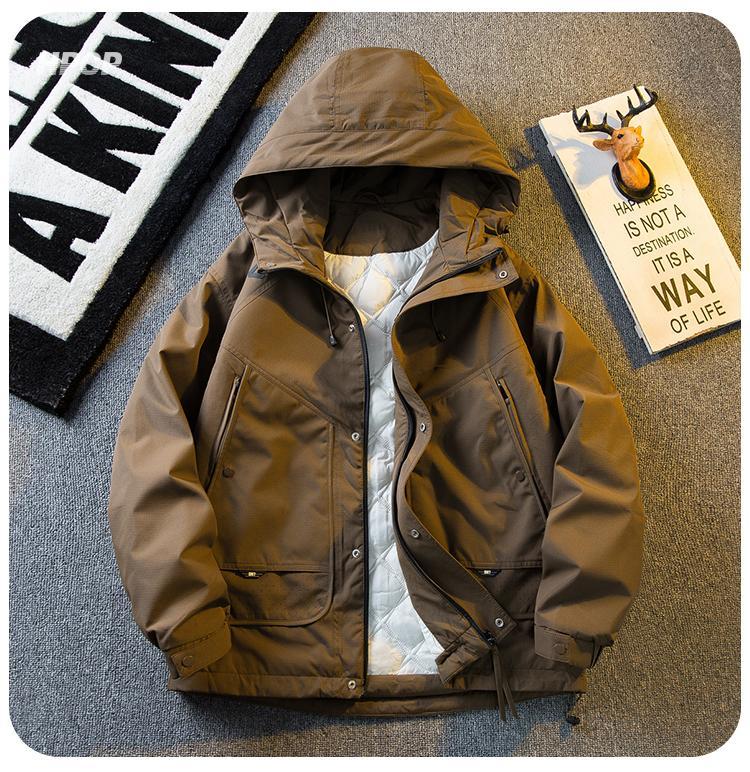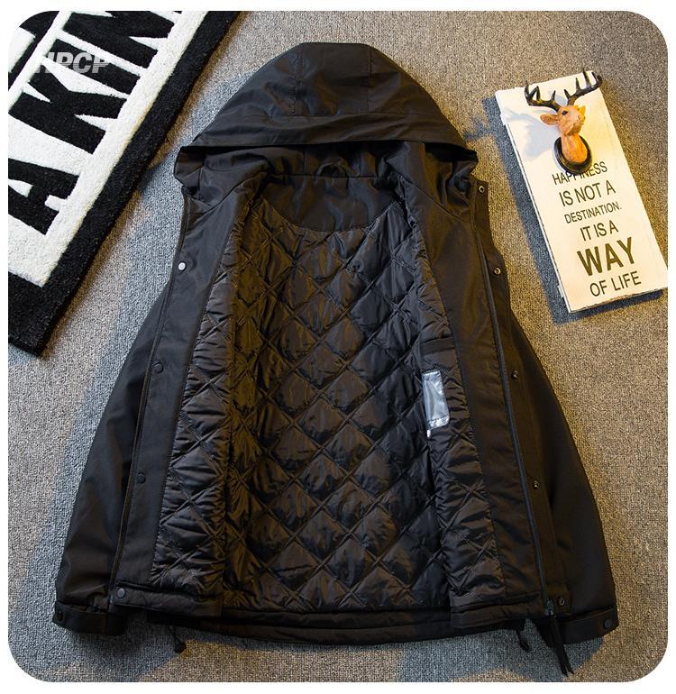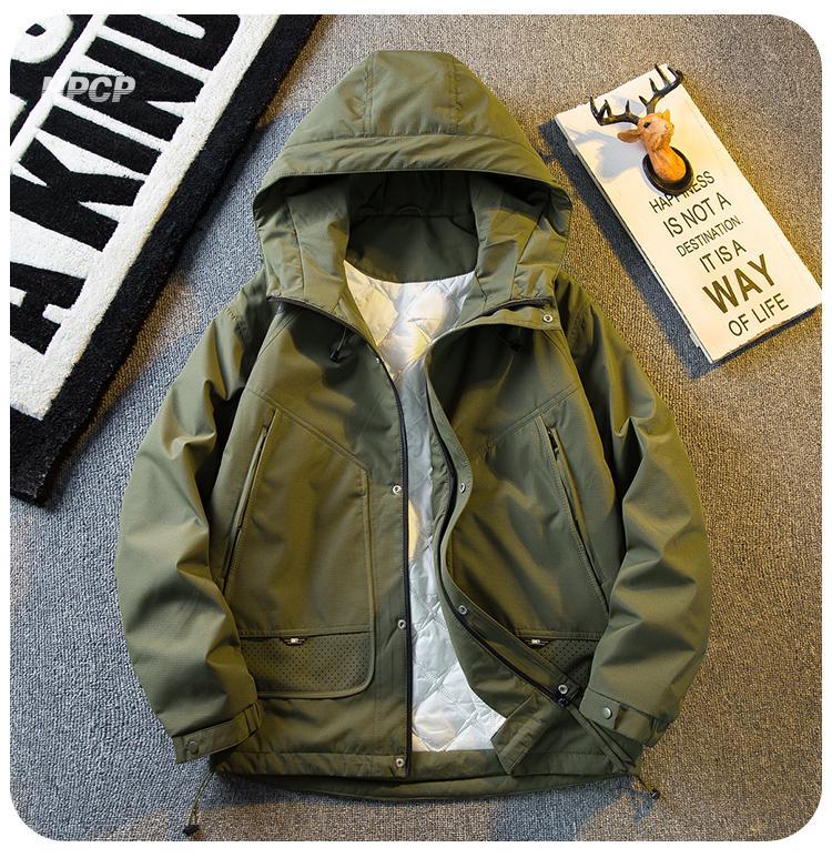 Kuraishi Kazuki trendy brand winter cotton clothing for men, thickened and velvet, outdoor warm and windproof work clothes, warm cotton coat jacket for men, black XL