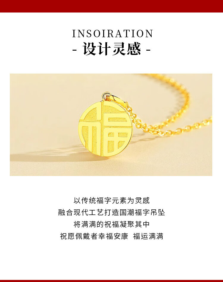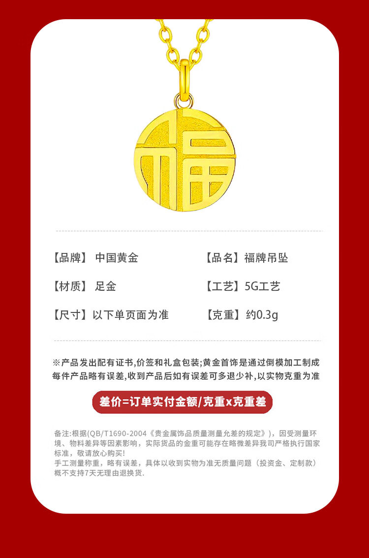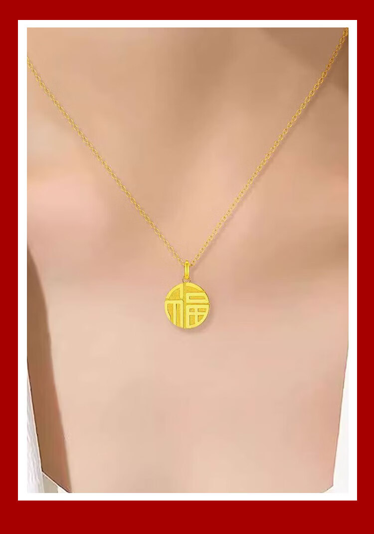 China Gold (CHINA GOLD) Gold Fortune Brand Necklace Women's Pure Gold Round Fortune Brand Necklace Pendant Birthday New Year's Day Holiday Gift for Girlfriend and Wife Fortune Brand Pendant About 0.3g Comes with S925 Chain National Gold Gift Box