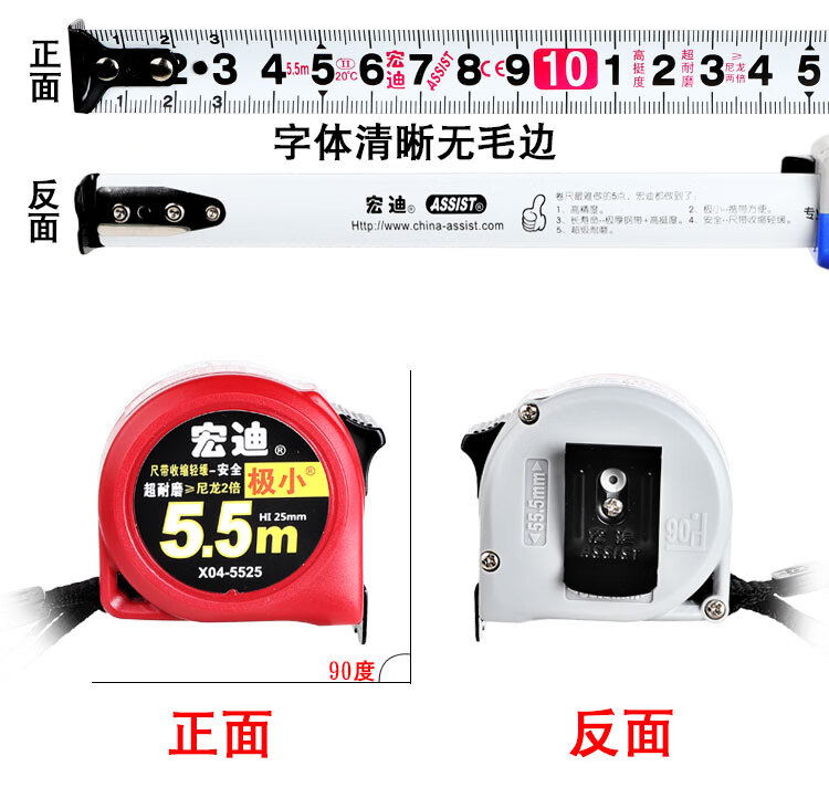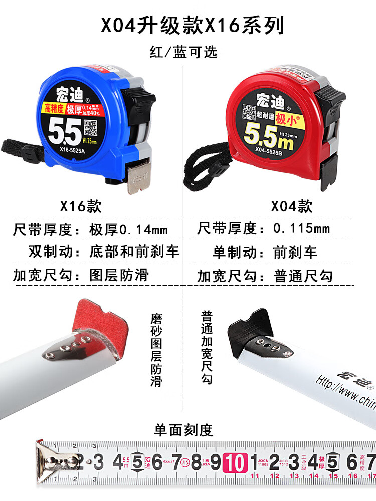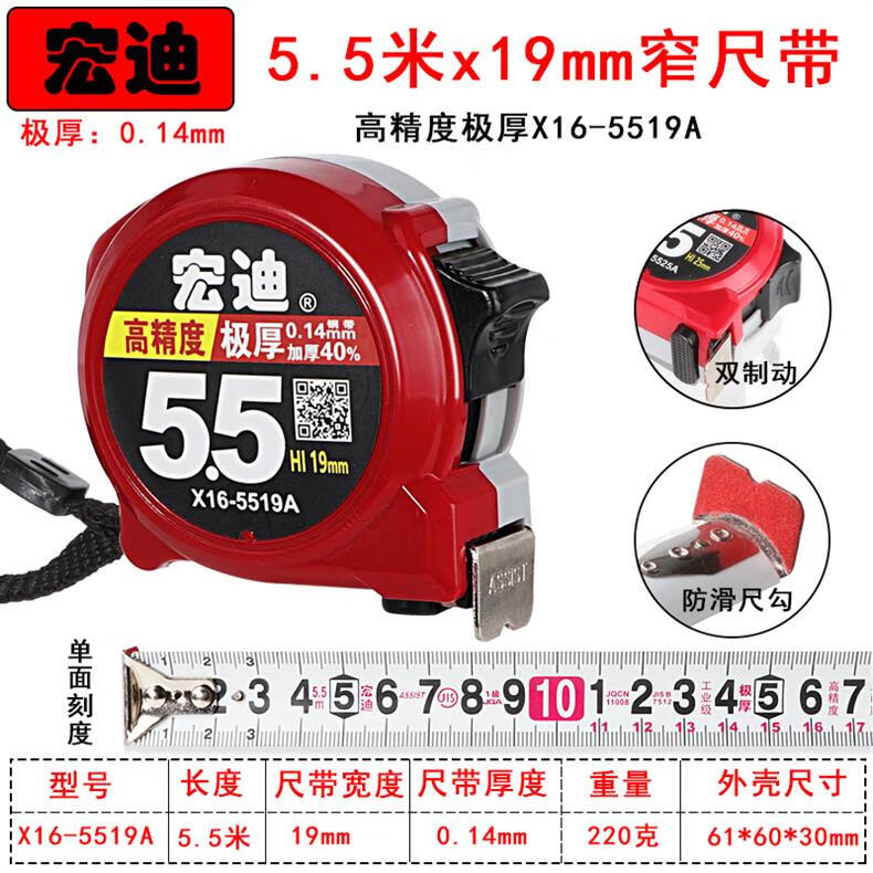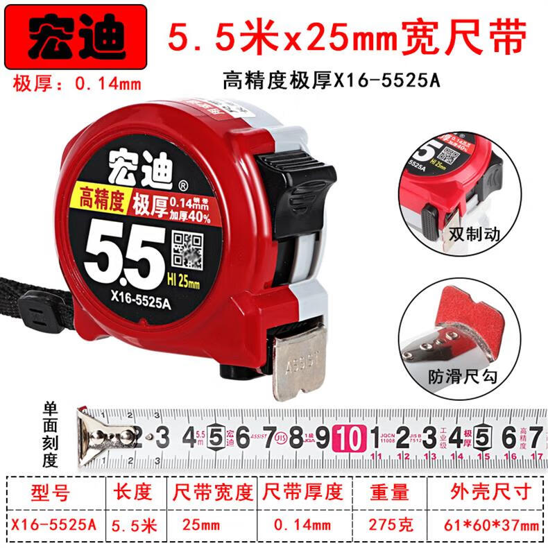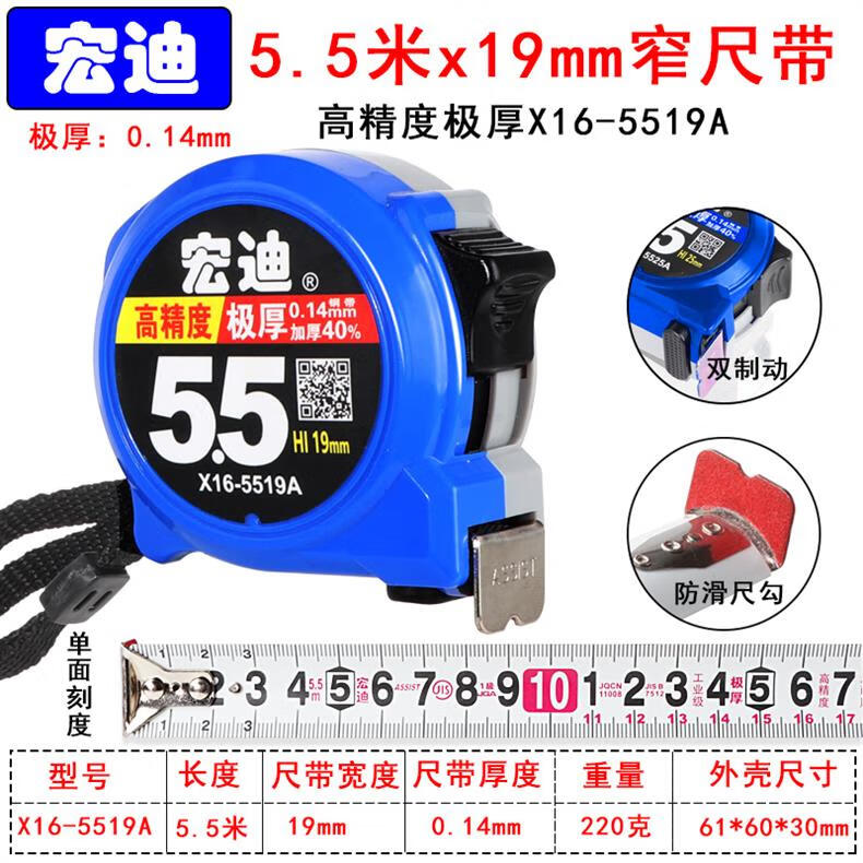 Hongdi ASSIST Hongdi steel tape measure metric thickened tape measure with high precision anti-fall and wear-resistant ruler 5.5 meters 3.5 meters X16-5525A (blue) 5.5 meters X25mm wide ruler others