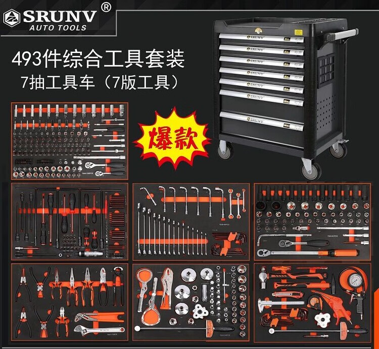 NB final warranty of 720 pieces and 521 pieces for auto repair special tool cart set with high strength and thickened removable 7-layer drawer repair 7-layer economical tool cart