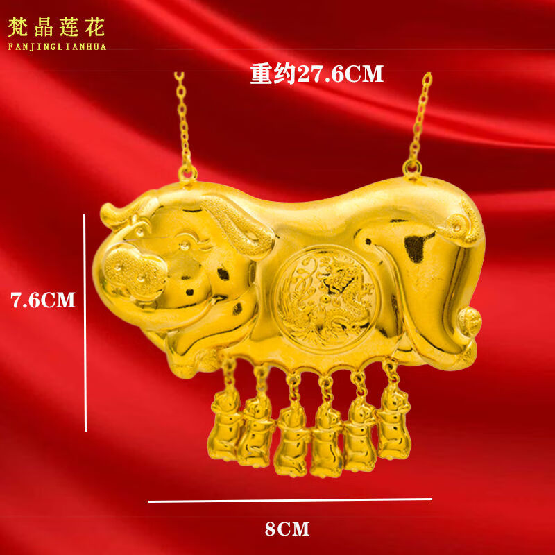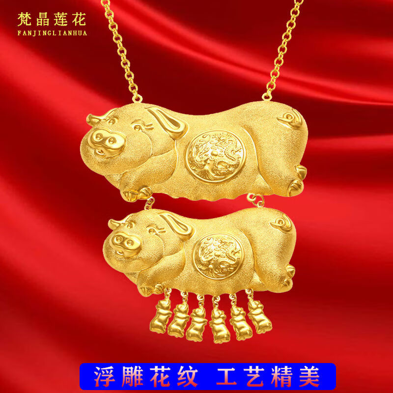Mu Qiansha Golden Pig Necklace Women's Bridal Wedding Accessories Simulated Gold Dragon and Phoenix Golden Pig Pendant Wedding Three Gold Jewelry Double Lucky Pig Necklace + Gift Box (Including Real Gold Gift Box