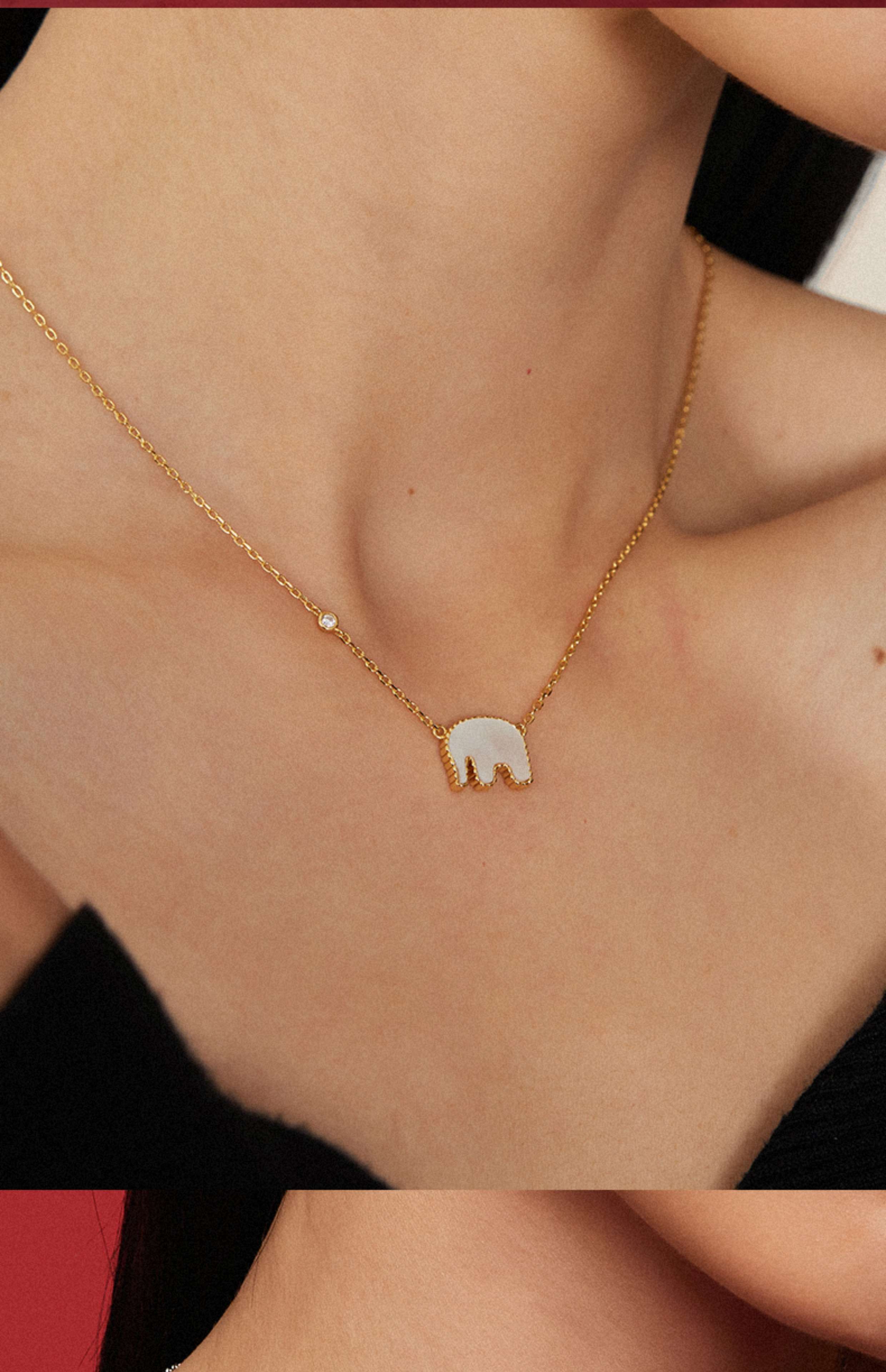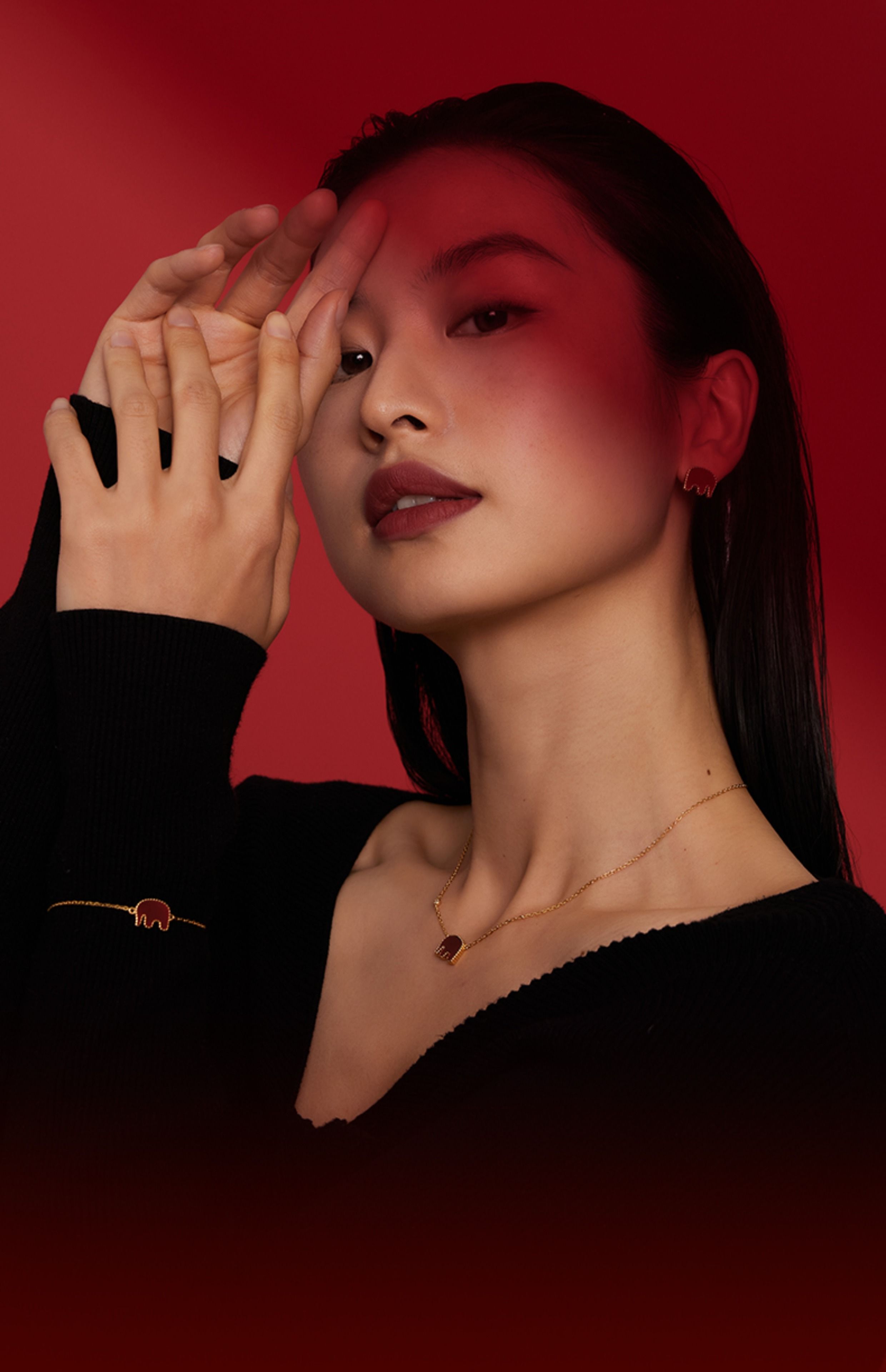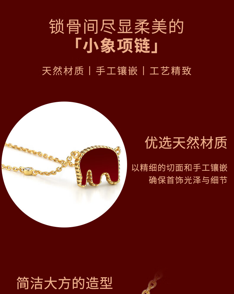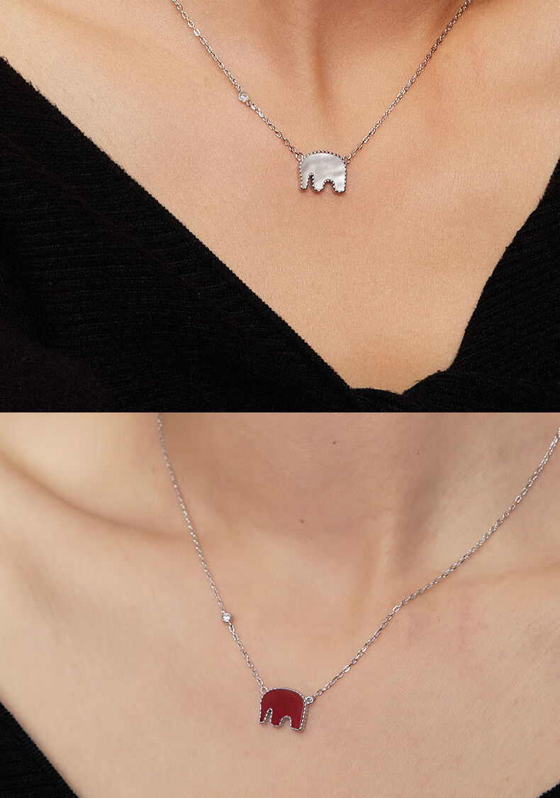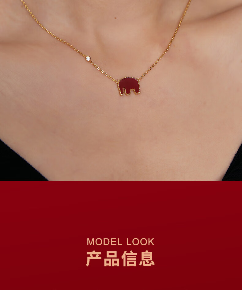 Mu Qian ONONESOWN baby elephant necklace 925 silver plated 18k gold red agate pendant New Year girlfriend gift gold/red agate