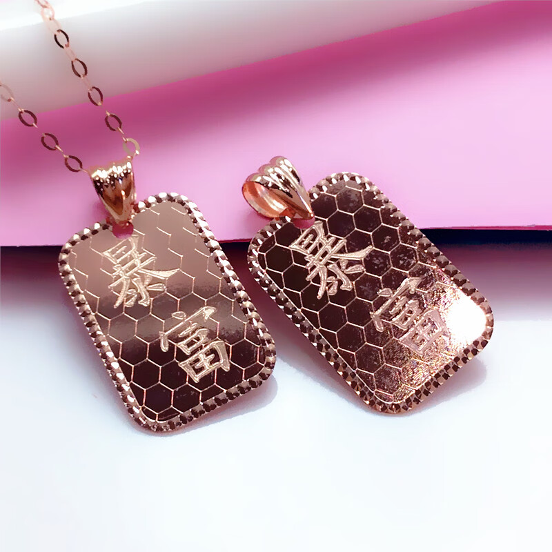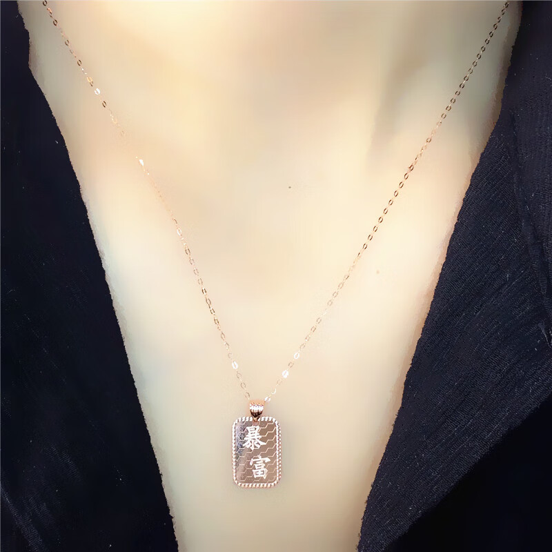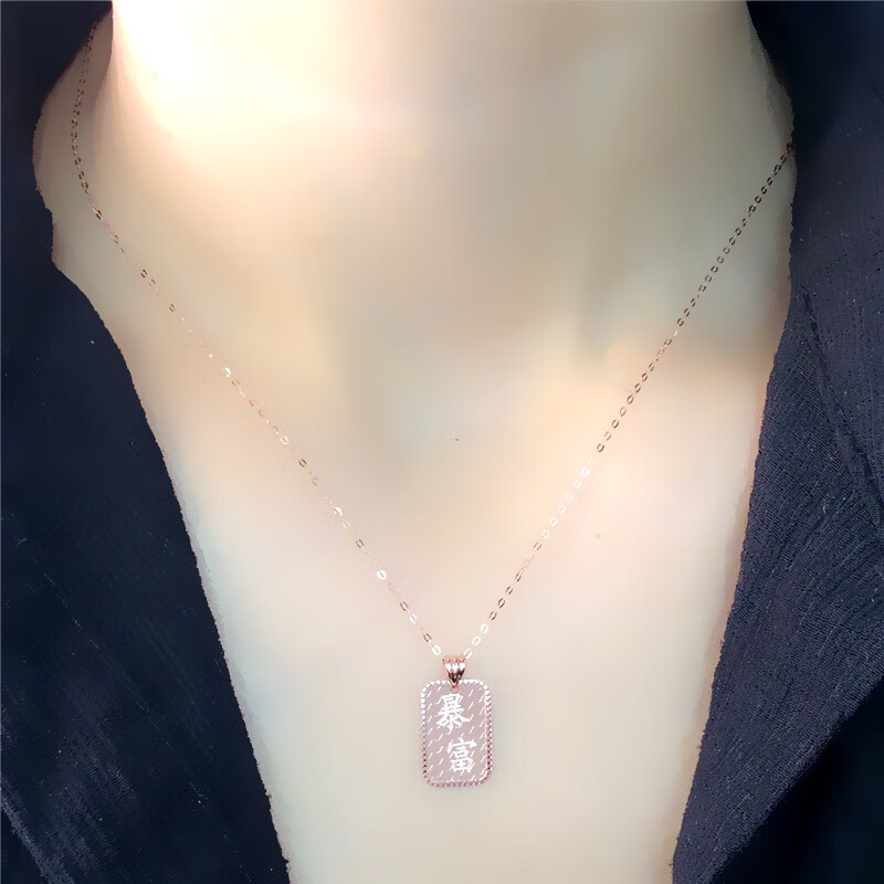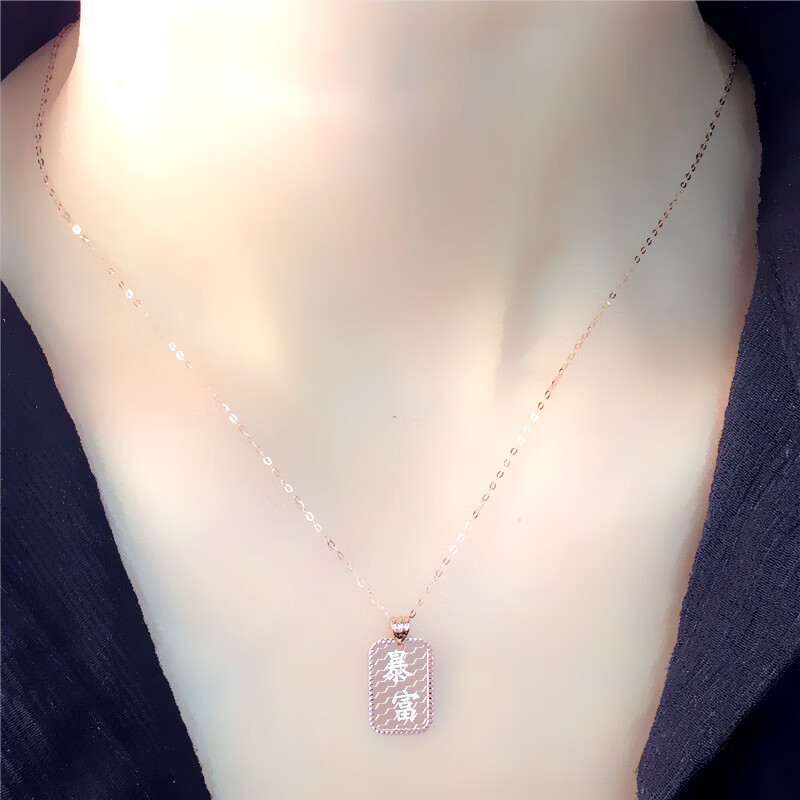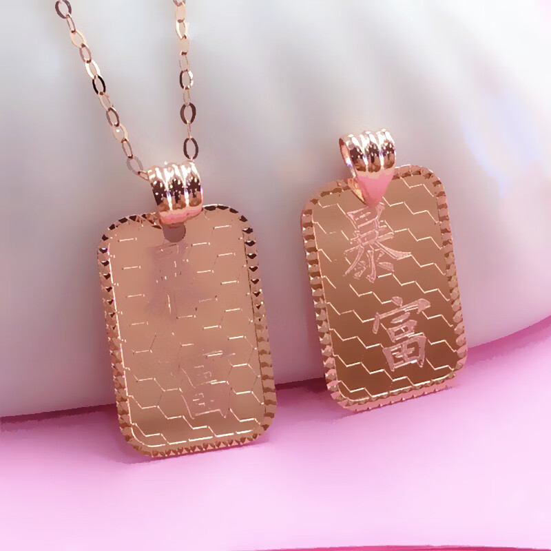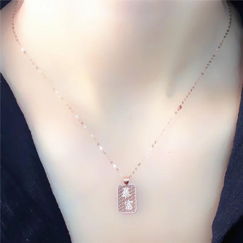 Mrs. Muqian jewelry new style 14k color gold rose gold ladies rich square brand pendant simple and elegant 14k purple gold necklace single pendant