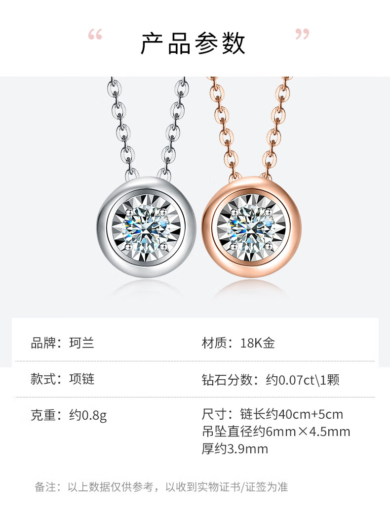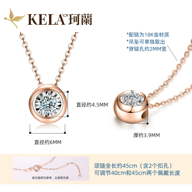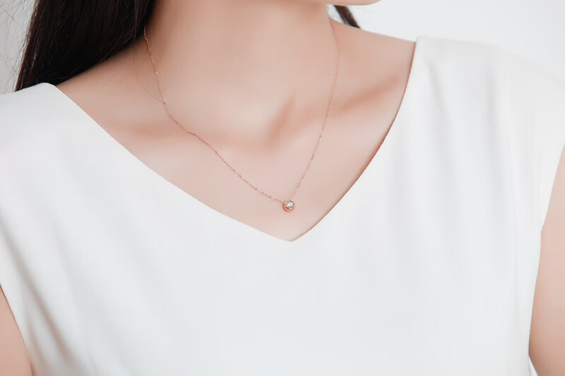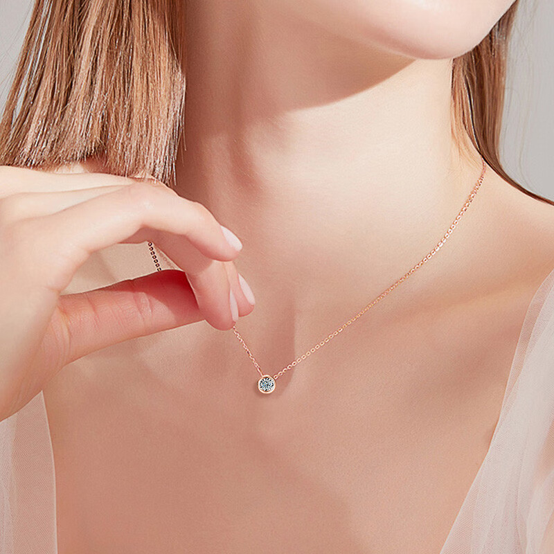 Mu Qian Kelan Diamond Diamond Rose Gold 18k Necklace Jurchen Diamond Pendant Single Diamond Clavicle Chain Color Gold Set Chain Bubble Chain Ungraded below 20 points Ungraded white 18K gold below 20 points (7 points diamond