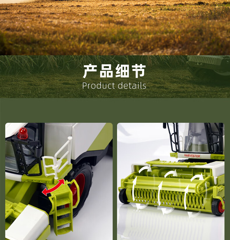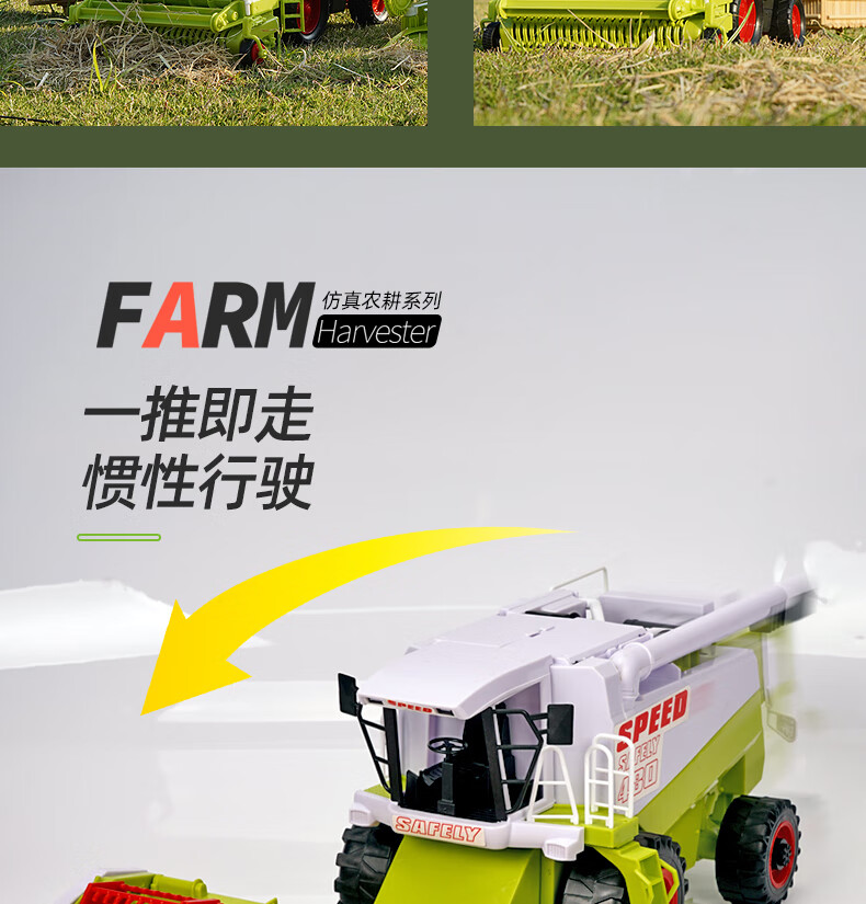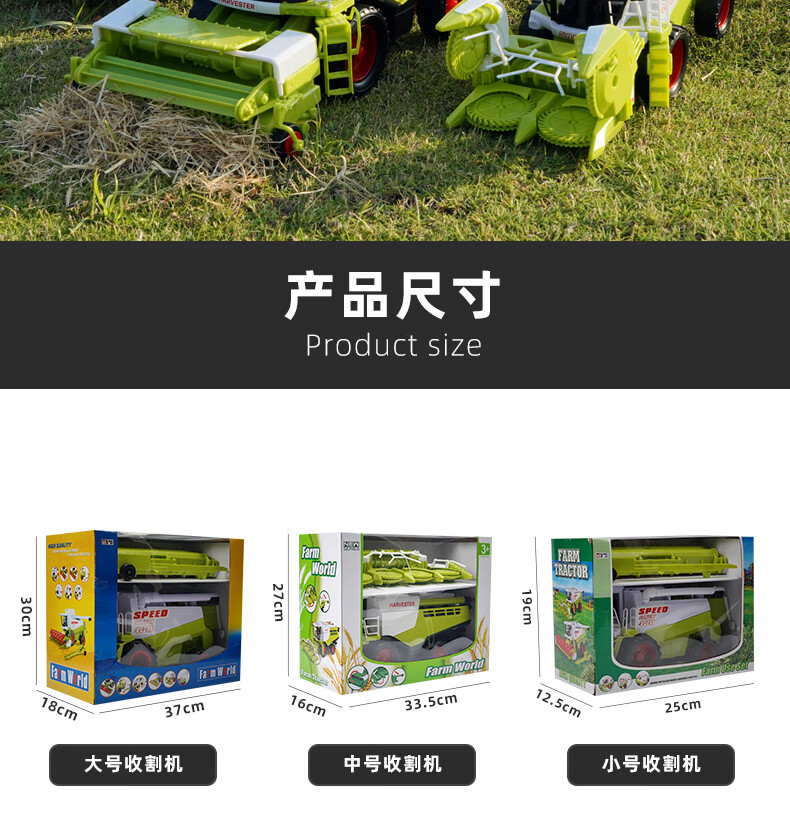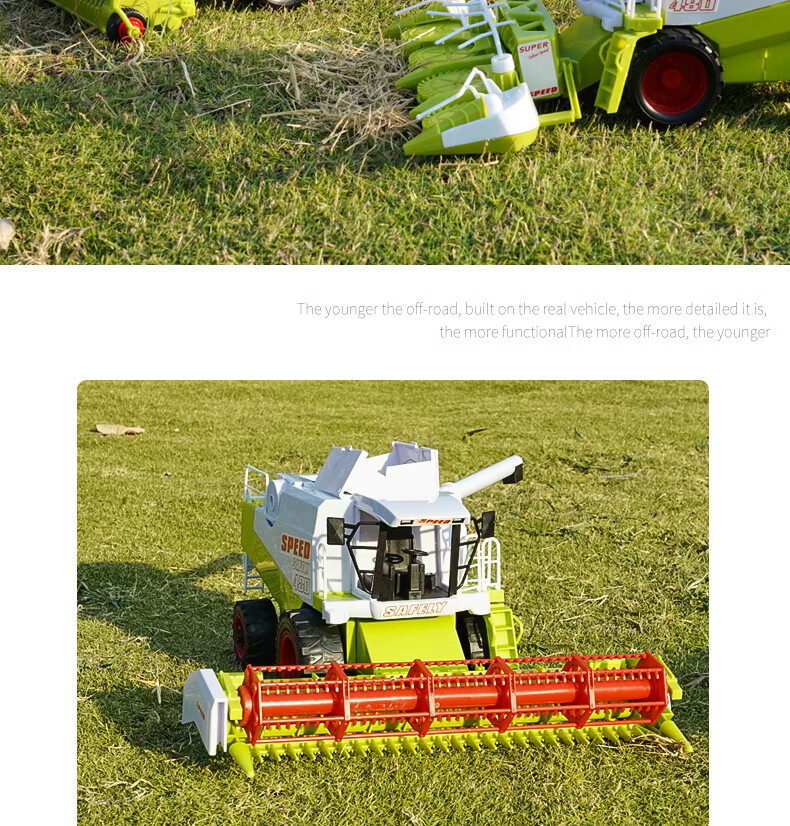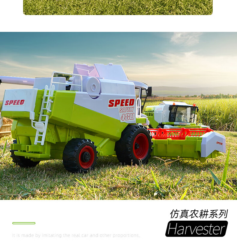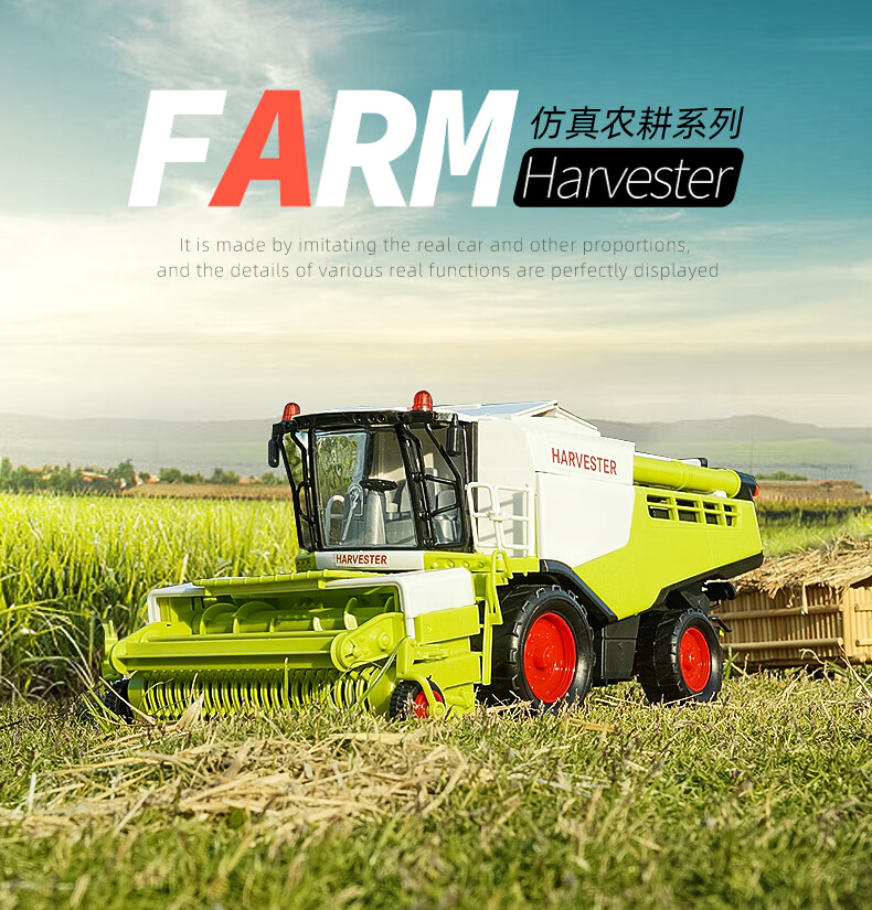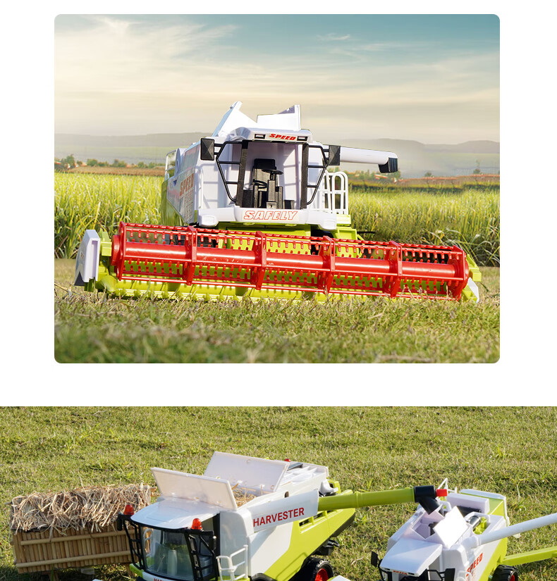 Children's combine harvester model educational oversized inertial boy 3-year-old farmer tractor simulation toy car remote control version wheat harvester discharging remote control