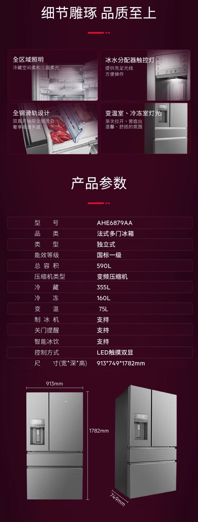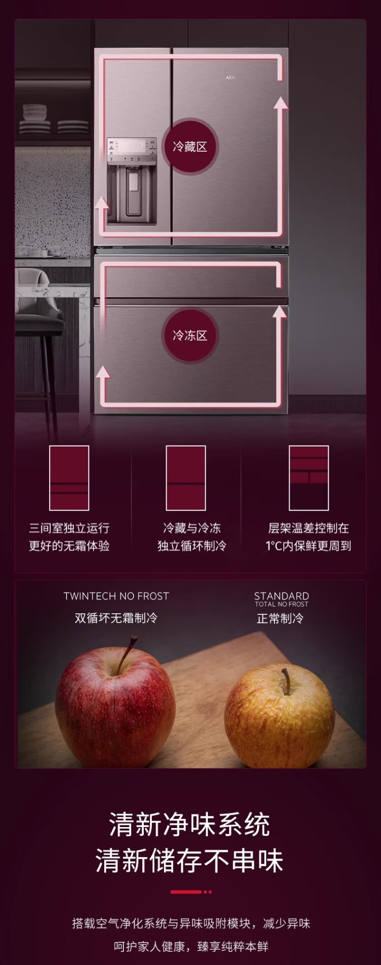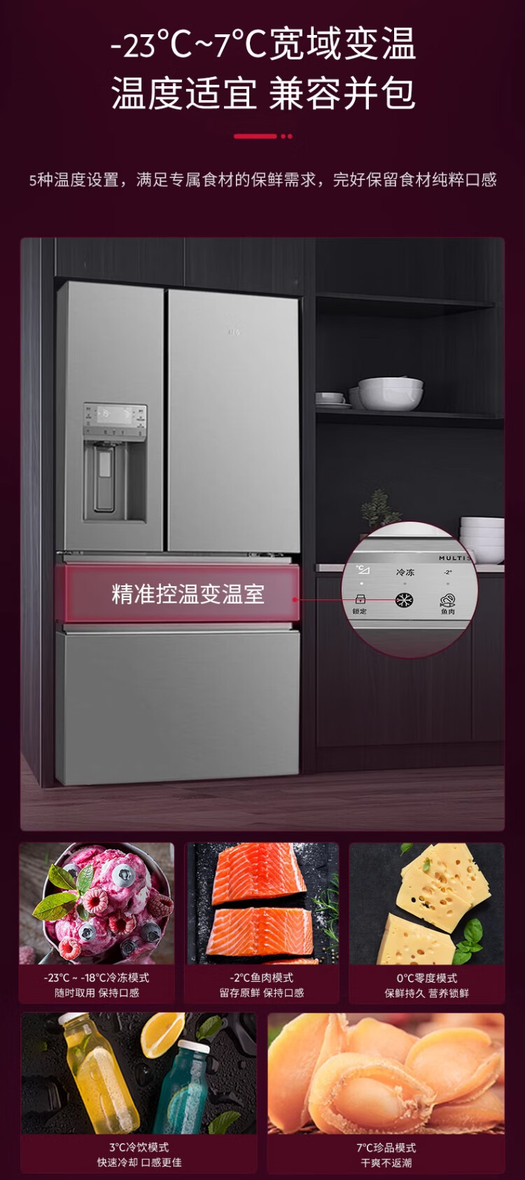 AEG complete machine original imported French double cycle refrigerator variable frequency air-cooled frost-free energy-saving 590L large capacity precise temperature control 75L variable temperature space automatic ice making three-in-one AHE6879AA