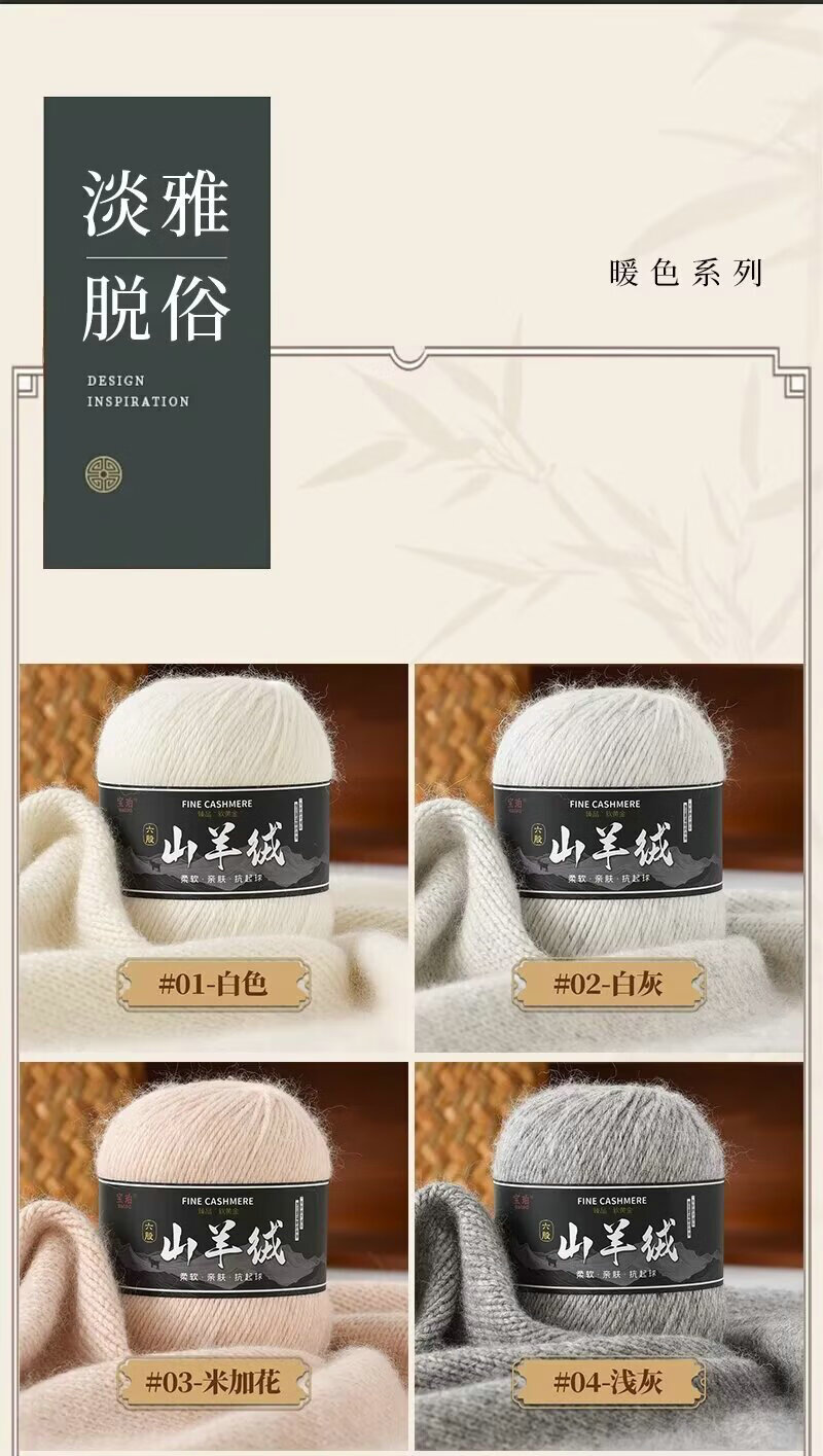 Embroidered Luoshang scarf, handmade cashmere thread material package, medium thick wool thread ball, hand-knitted diy material package, gift scarf for boyfriend, white 01 (6 balls of thread + gift box + tools)