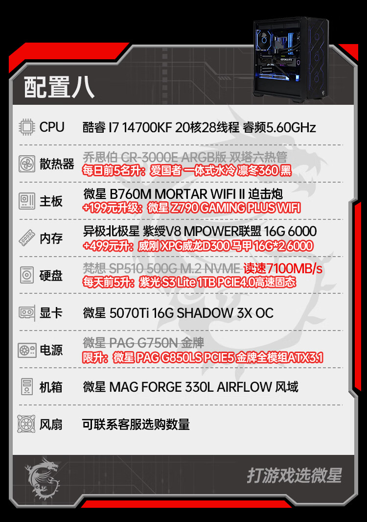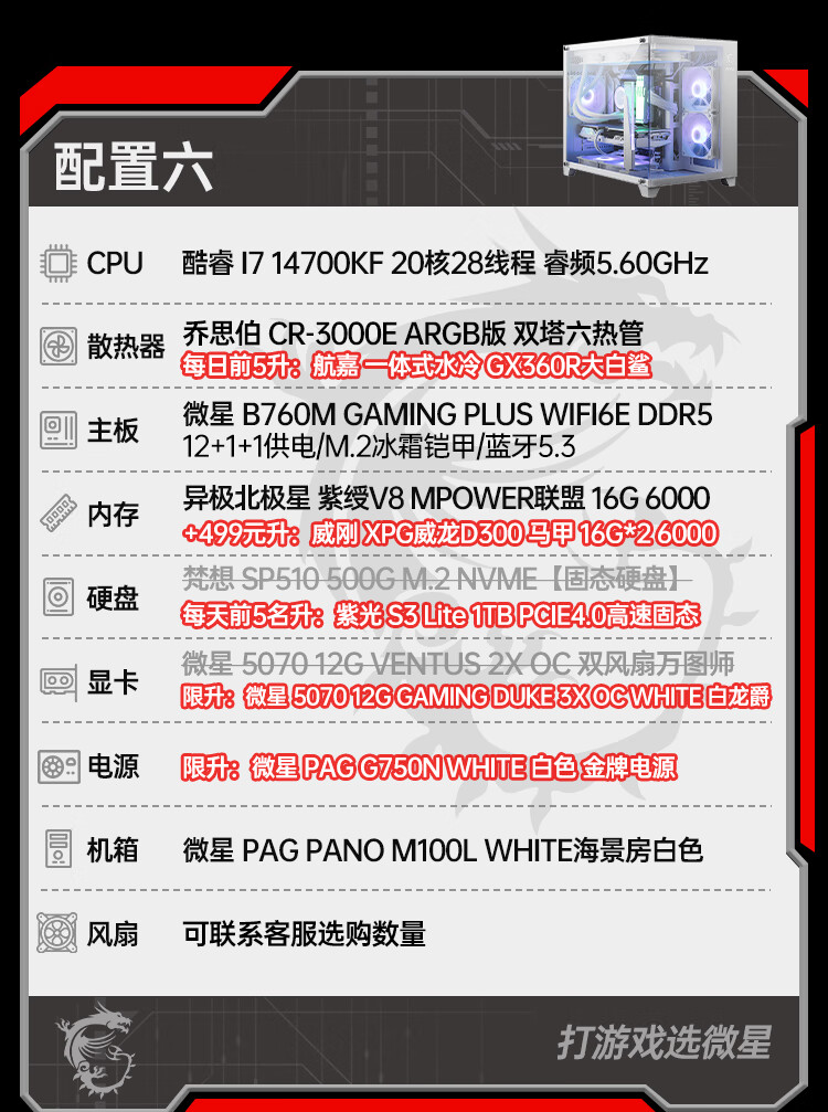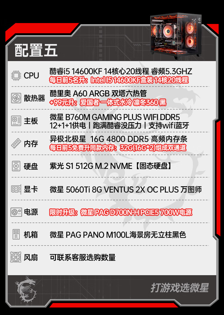 MSI (MSI) Intel 24-issue interest-free 265K i5 14600KF 5060Ti RTX5070Ti 5080 console game DIY assembly machine computer desktop 14600KF+RTX5060丨impulse model丨configuration four
