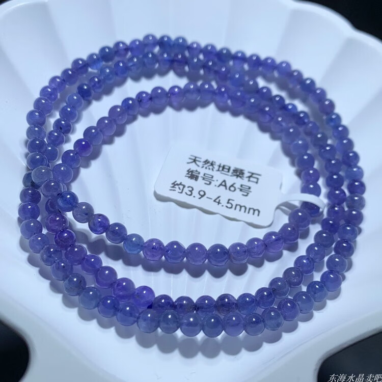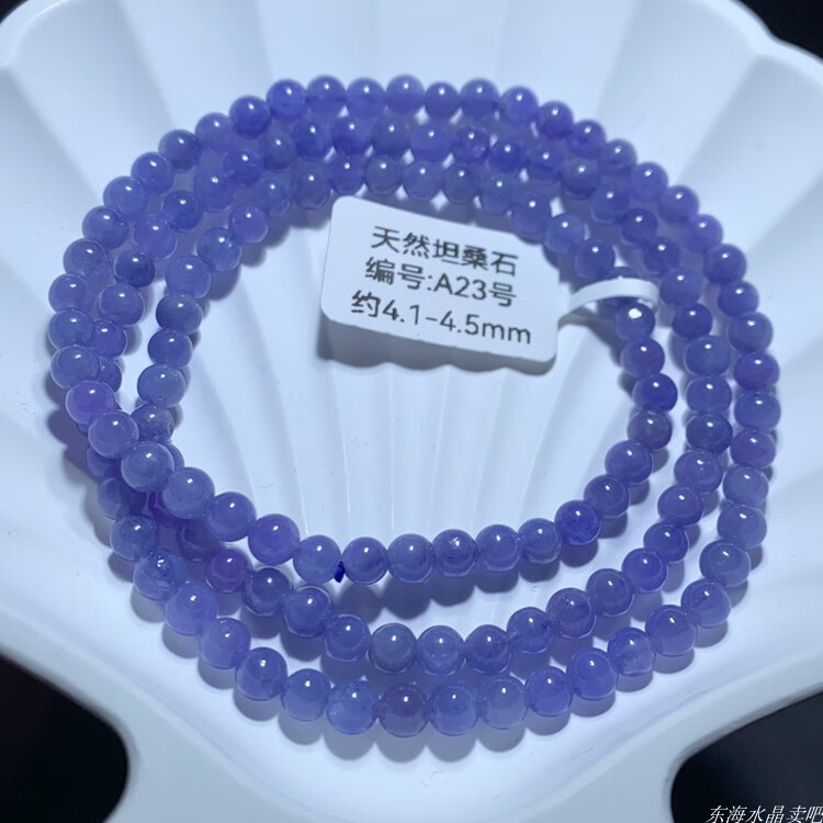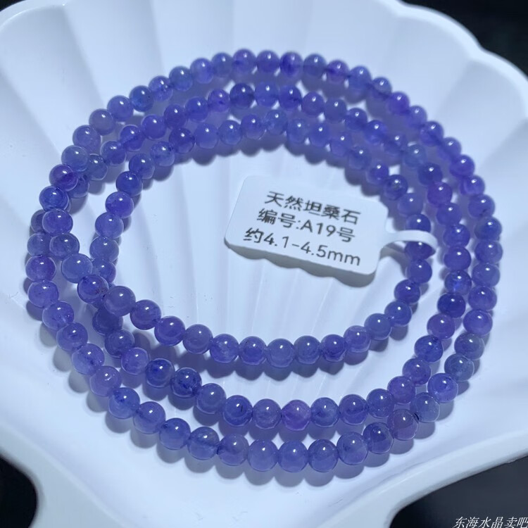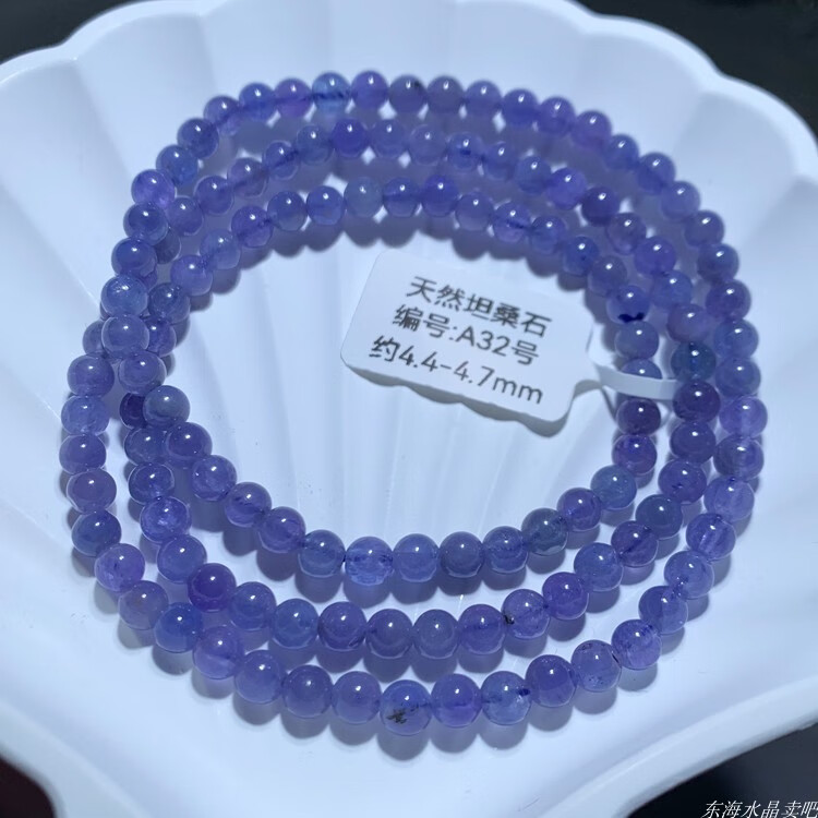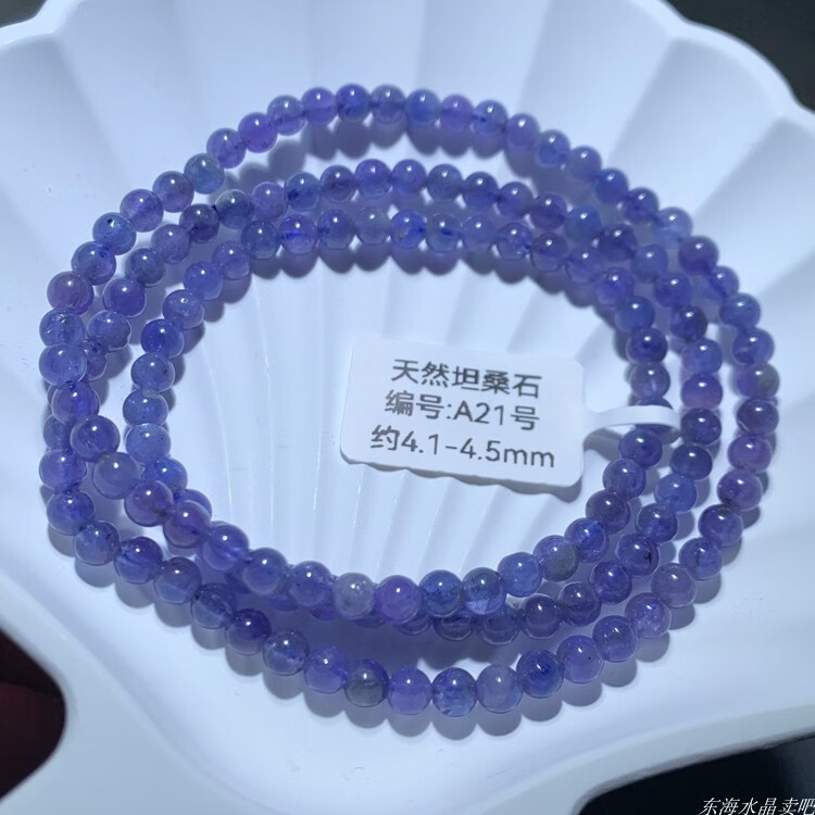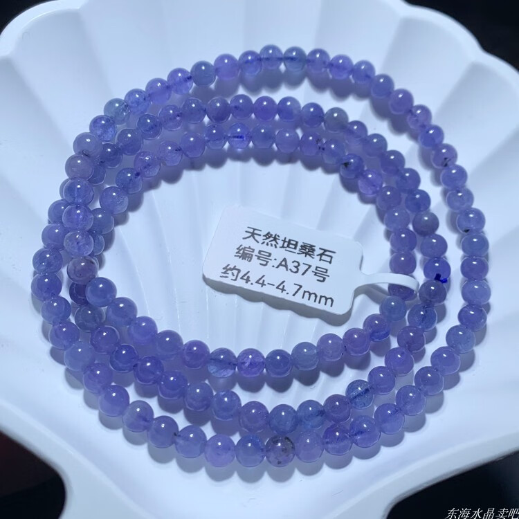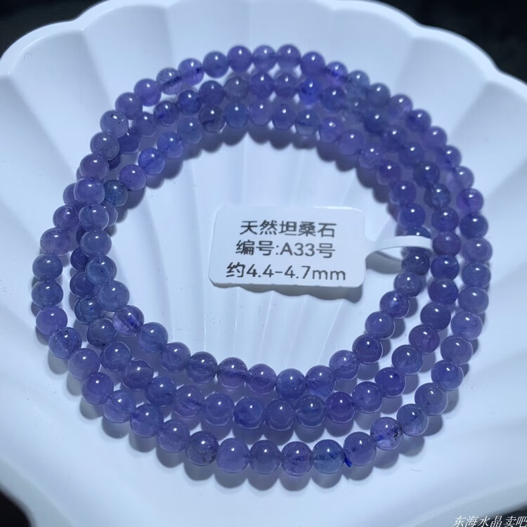 Pu Lian Natural Tanzanite Bracelet Women's Heart of the Ocean Purple Sapphire Crystal Tanzanian Gemstone Three Circle Beads Bracelet Jewelry (A18) Approximately 4.1-4.5mm