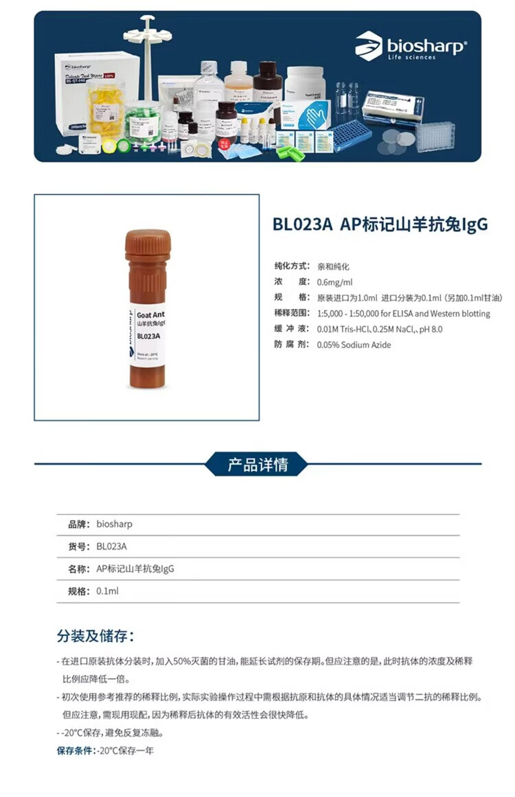 BIOSHARP BL023A AP labeled goat anti-rabbit IgG 0.1ml/tube BL023A 0.1ml/tube
