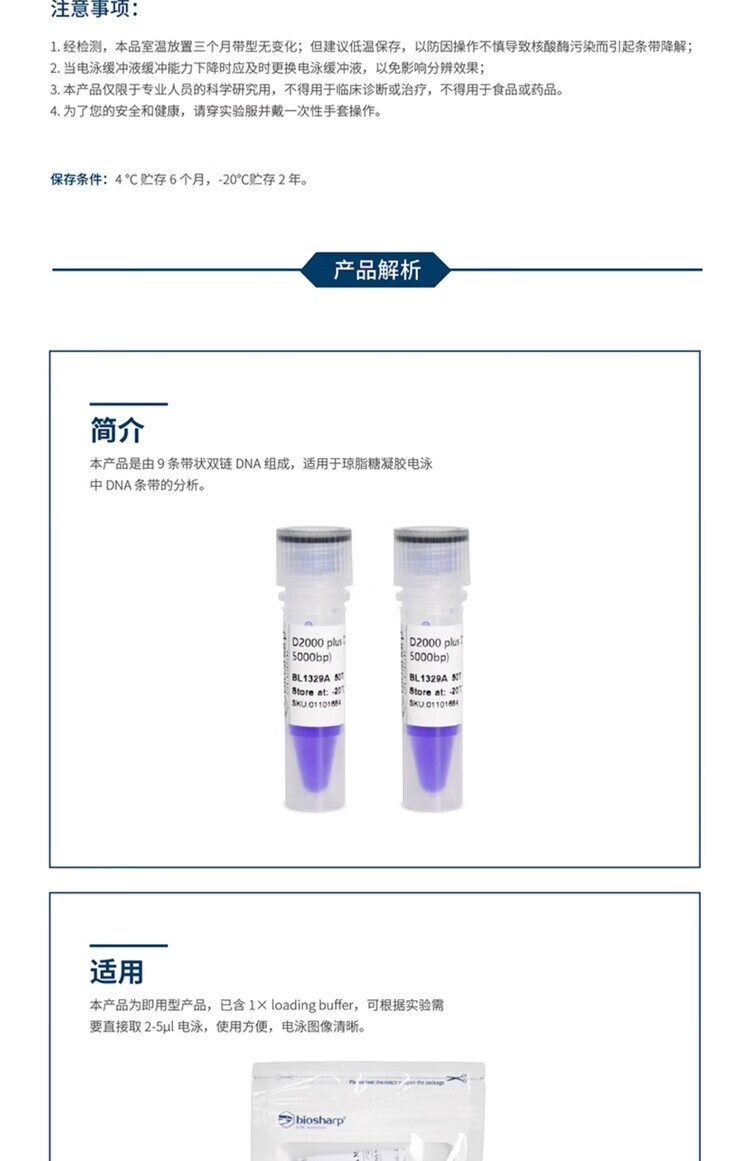 BIOSHARP D2000plusDNA Marker molecular weight standard (100-5000bp) BL1329A 50T