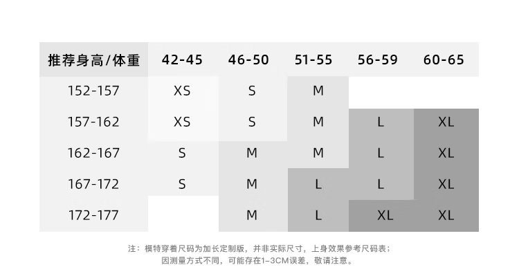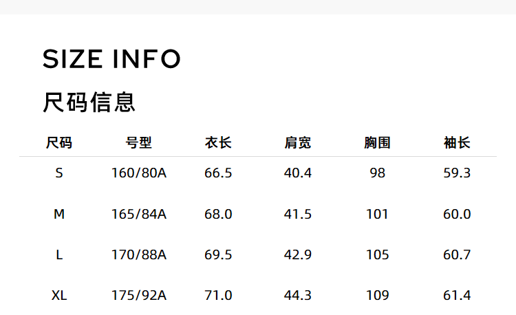 China (cm) 160-165/84-86 165-170 / 88-90 167-172 / 92-96 168-173 / 98-102 170-176 / 106-110