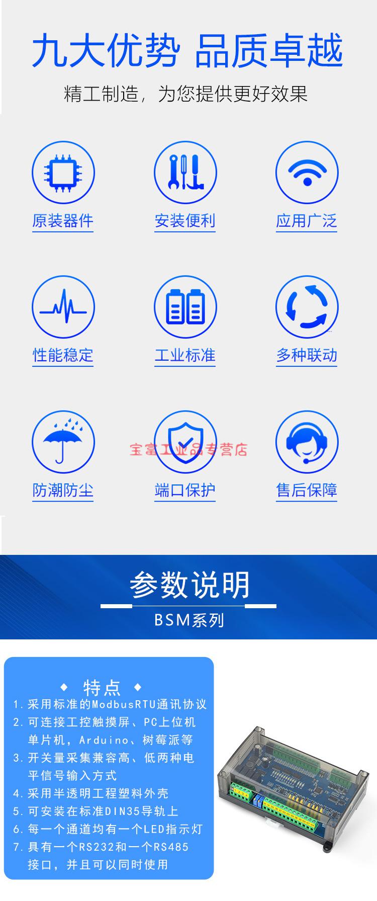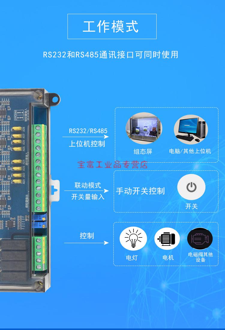 Suitable for RTU protocol module to switch RS232/485 serial port relay intelligent I/O collection RS232+485 11 inputs 4 outputs (crystal)-8AD-2D