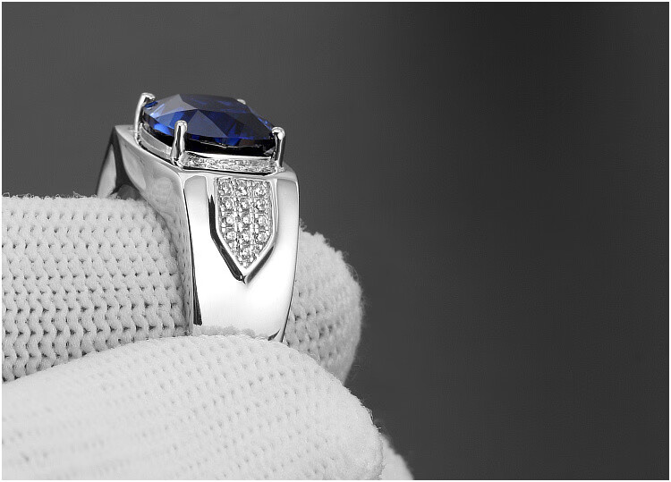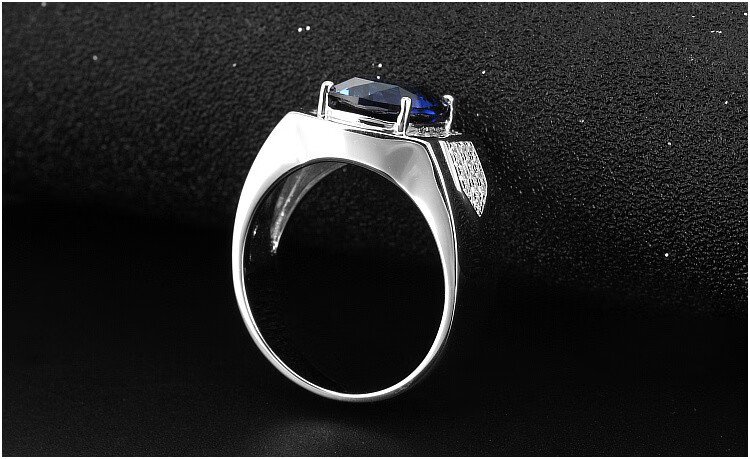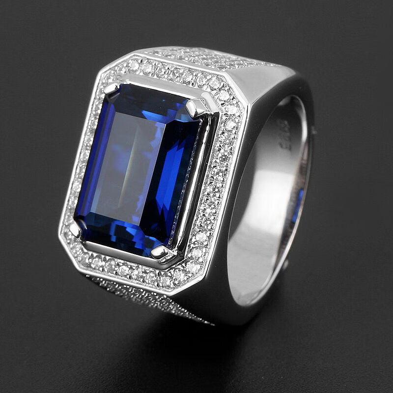 Pu Lian square tanzanite sapphire ring men's 925 sterling silver gold-plated inlaid colored gemstone ring trendy personality No. 14-54mm