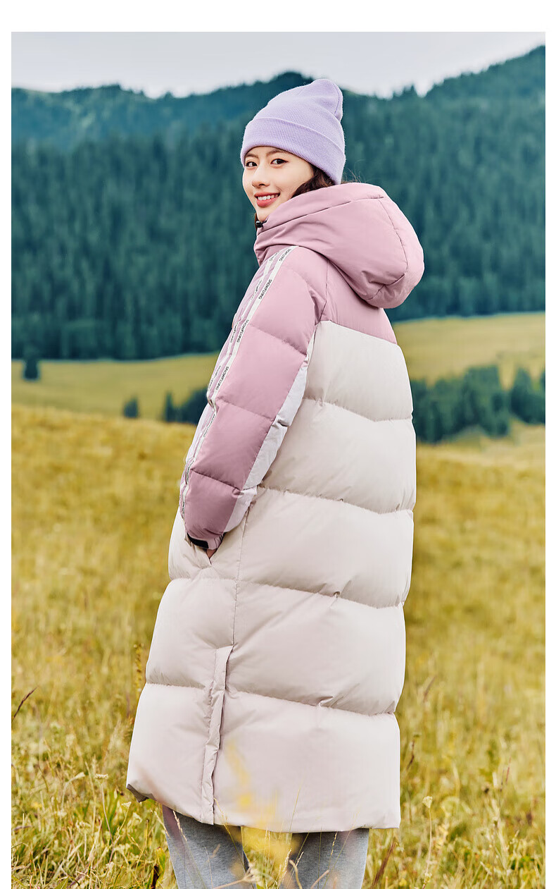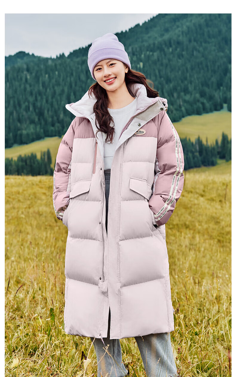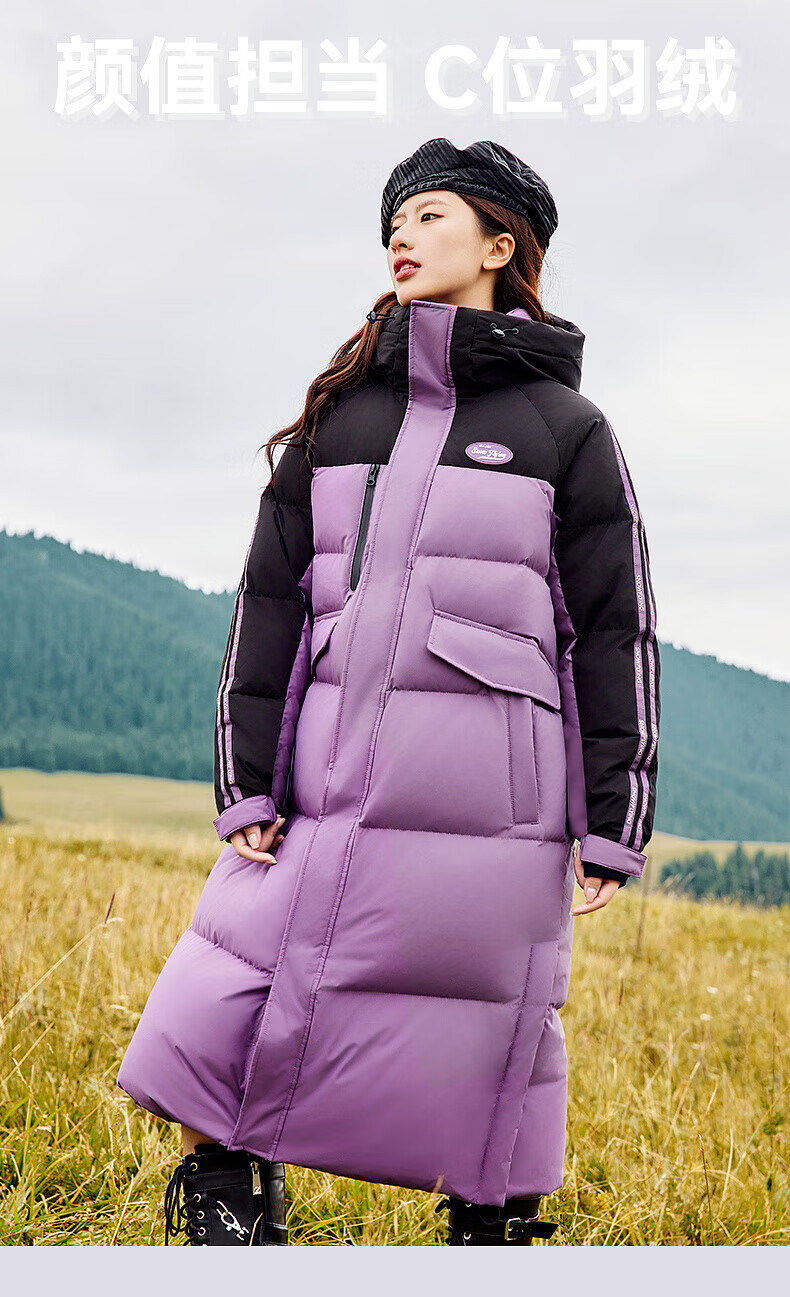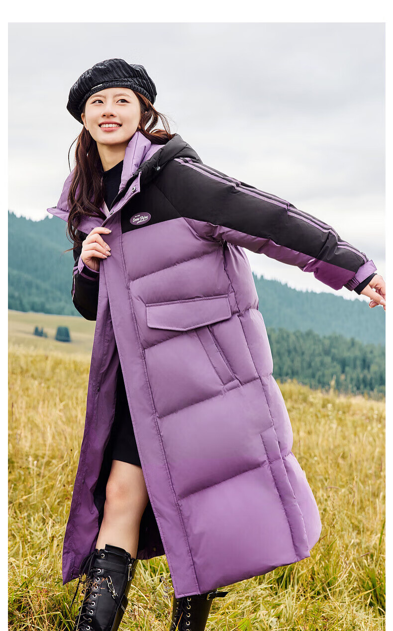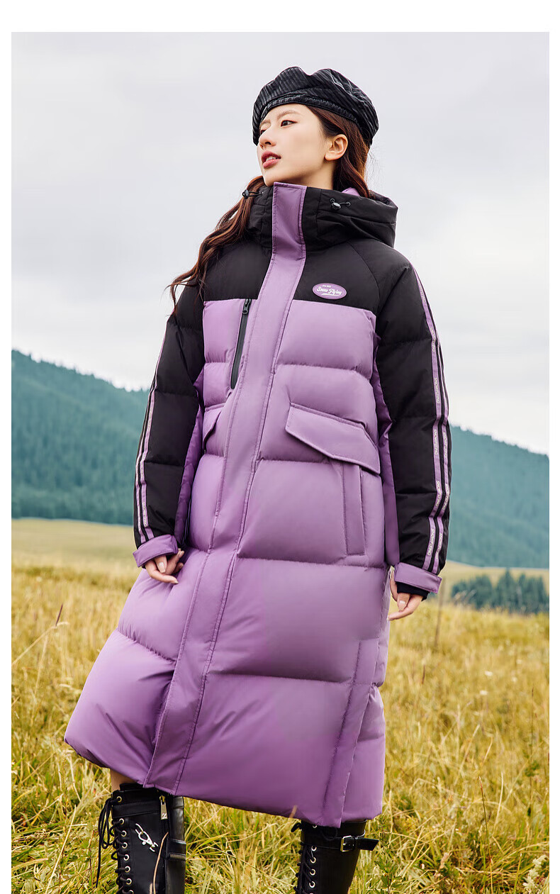 Flying in the Snow Autumn and Winter New Couple's Down Jacket with Contrast Color Vibrant Hooded Big Pocket Couple's Thickened Mid-Length Down Jacket Twilight Purple|6140 XS 160/84A