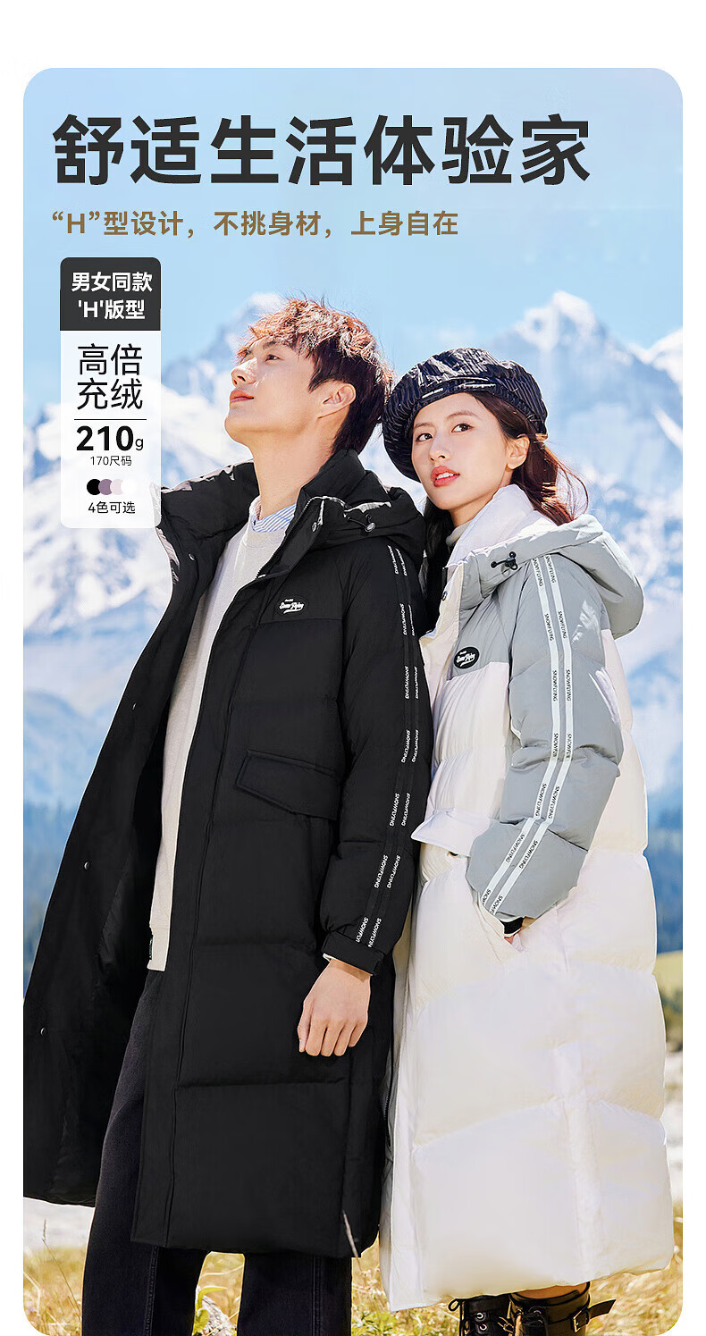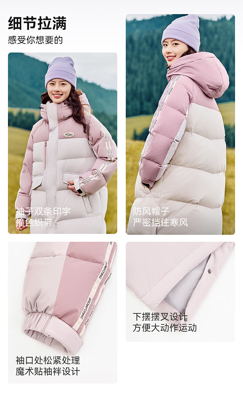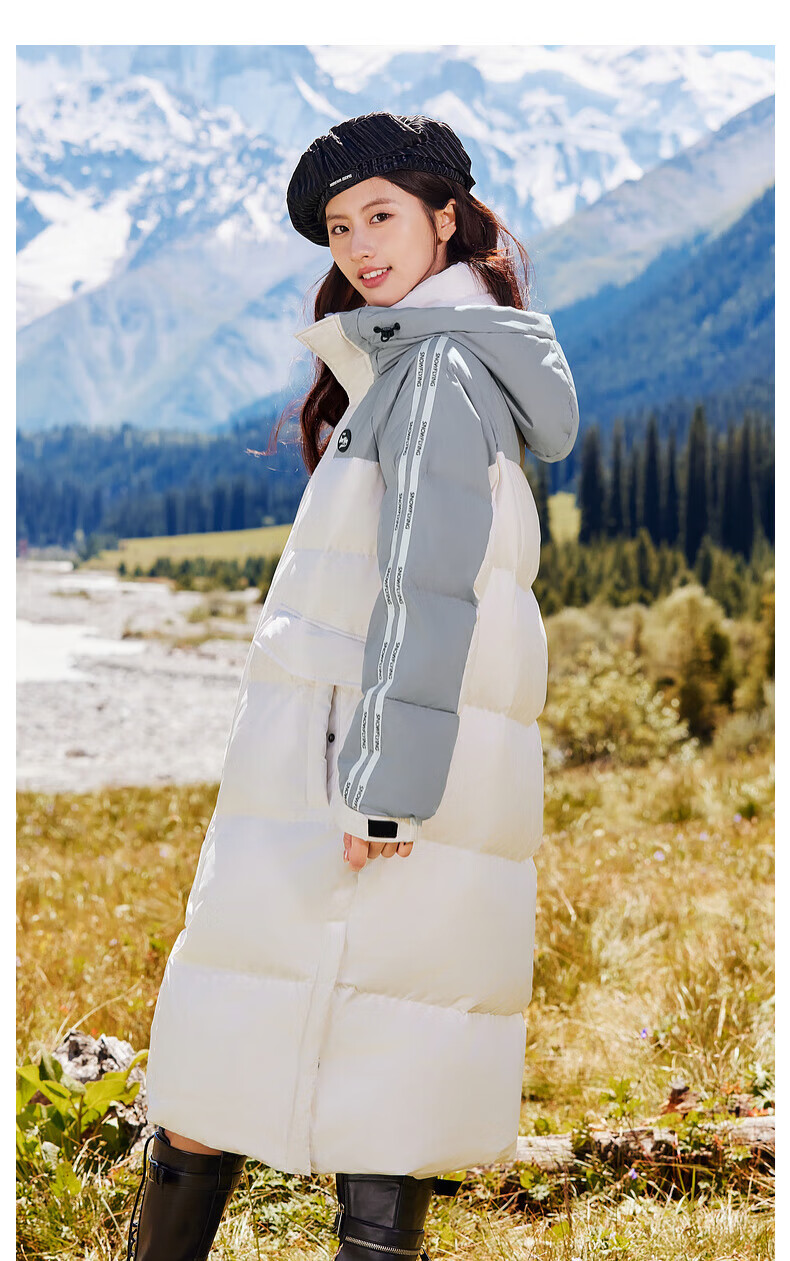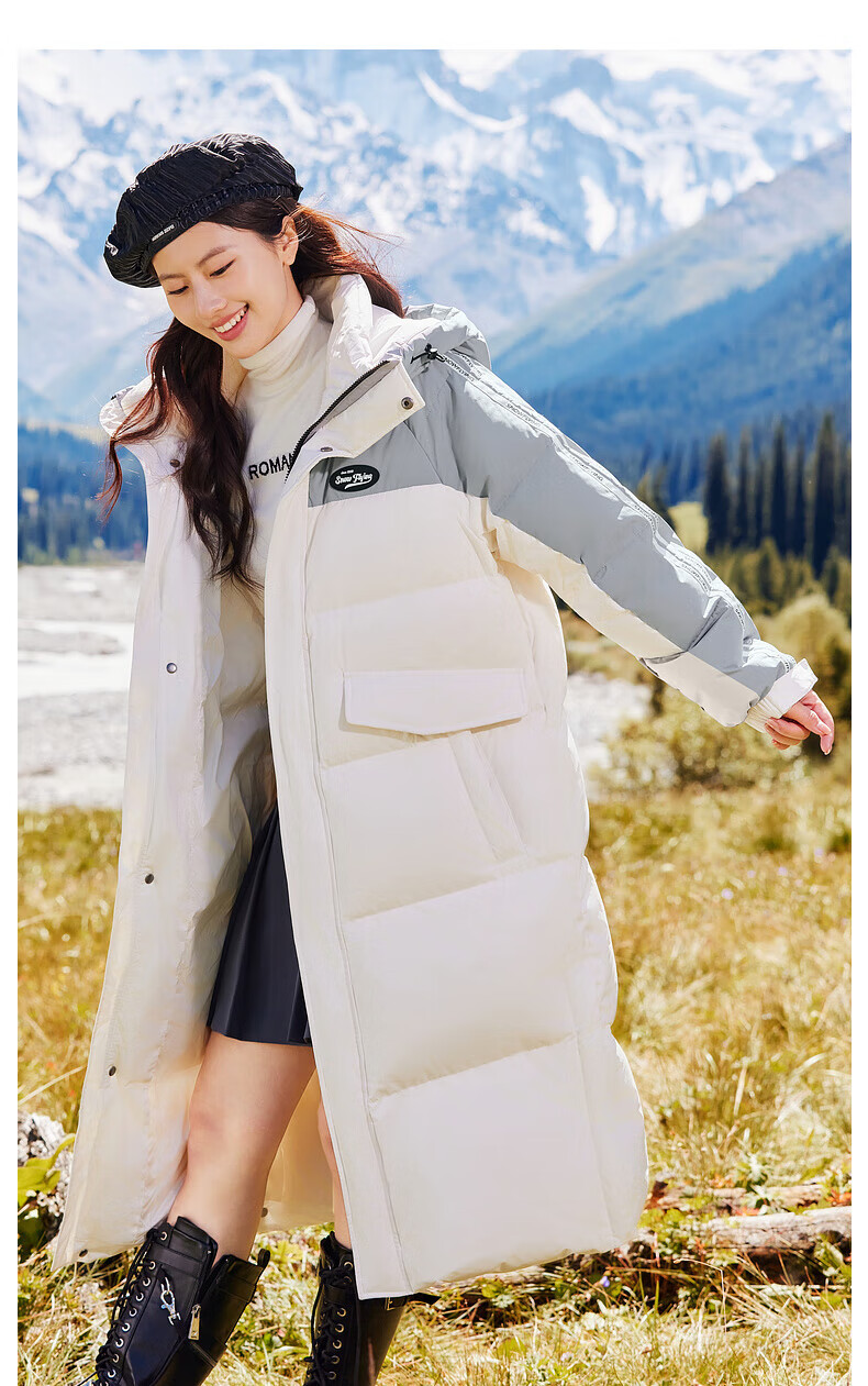 Flying in the Snow Autumn and Winter New Couple's Down Jacket with Contrast Color Vibrant Hooded Big Pocket Couple's Thickened Mid-Length Down Jacket Twilight Purple|6140 XS 160/84A