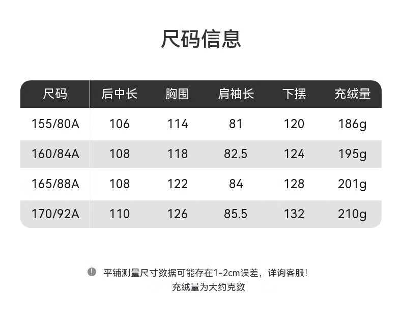 China (cm) 160-165/84-86 165-170 / 88-90 167-172 / 92-96 168-173 / 98-102 170-176 / 106-110