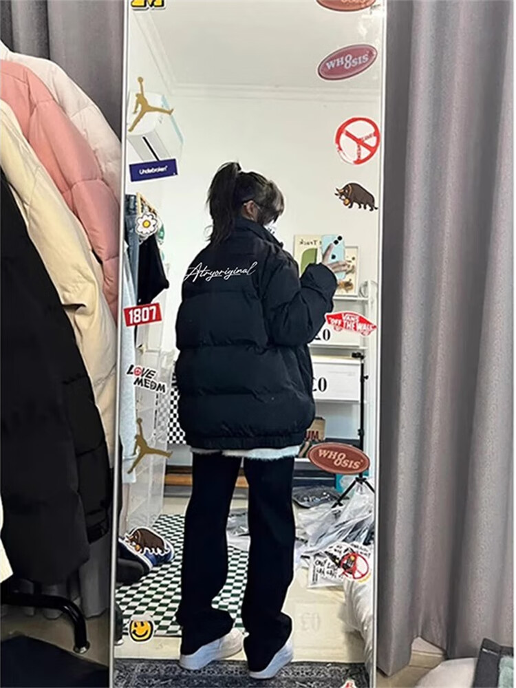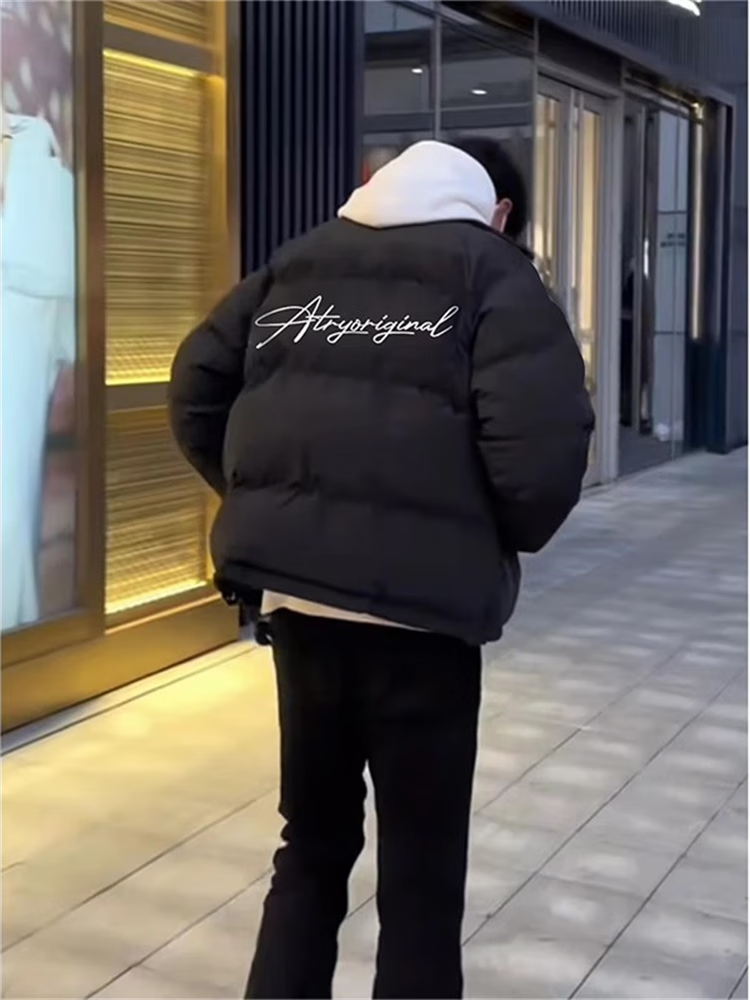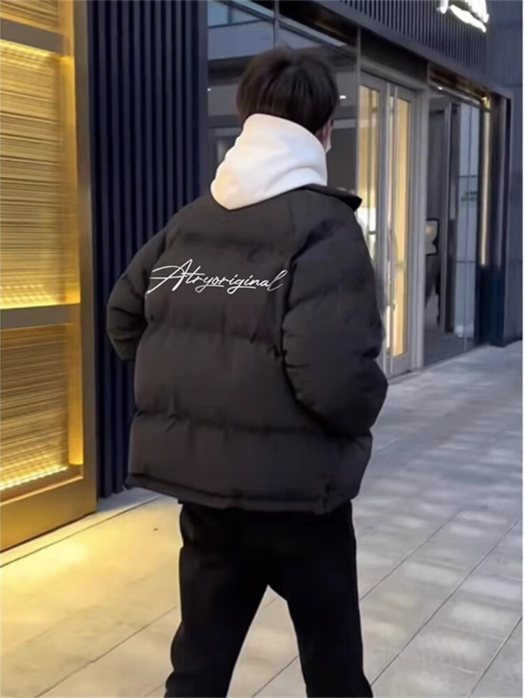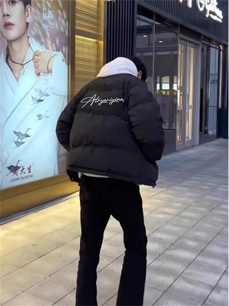 Yiran presents men's winter new style down padded jacket, stylish loose cotton coat, Korean style personalized stand-up collar high street youth cotton-padded jacket for men, black L recommended 105-125Jin Jin equals 0.5 kg