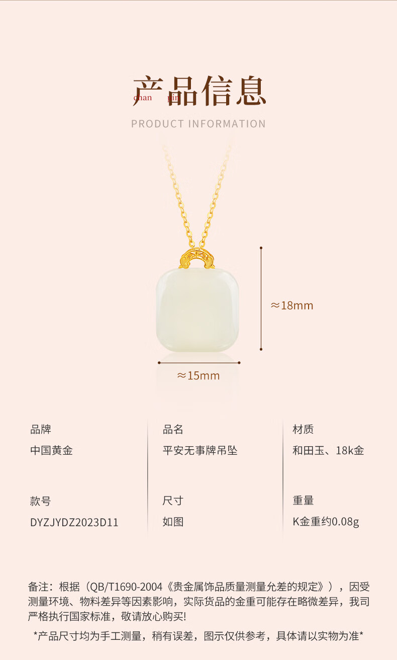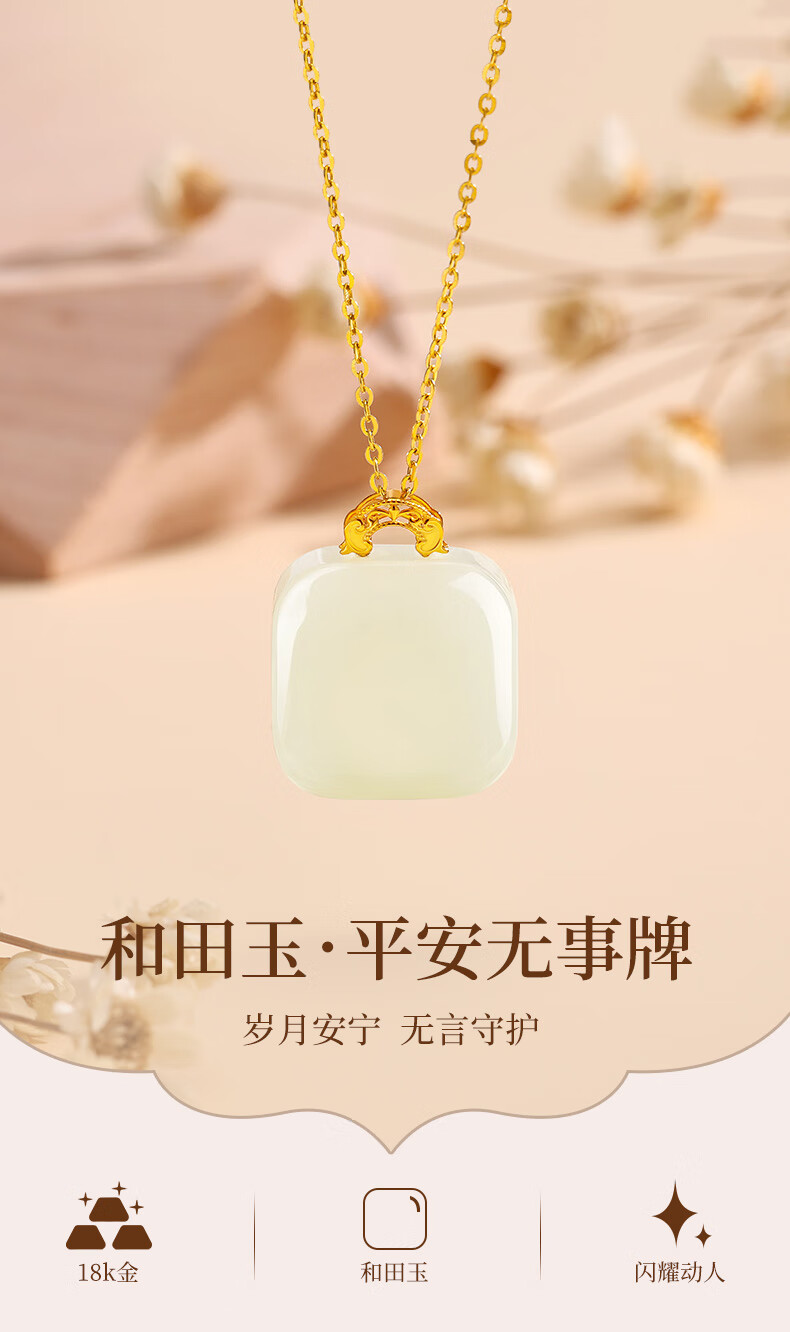 CHINA GOLD Hetian Jade 18k gold necklace small sugar cube pendant for mother and girlfriend’s birthday and Valentine’s Day gift 18K gold small sugar cube + free silver chain + beloved gift box