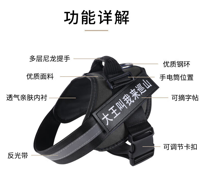 Bei Chuzhong dog leash, large dog leash, dog leash, dog leash, dog leash, medium-sized dog, large dog, golden fur border shepherd leash, dog harness - free leash * 1 copybook * 4, black L - suitable for 35-65 Jin, equal to 0.5 kg, large dog, explosion-proof chest harness - lightweight, non-neck-reflective strip