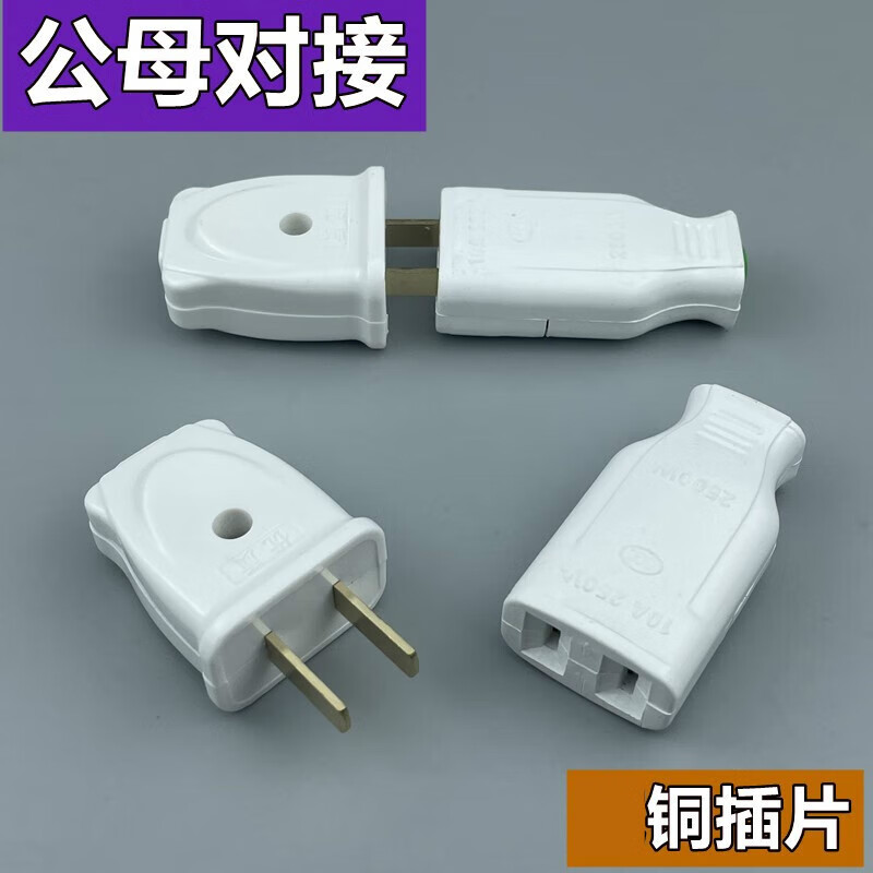 Copper two-hole female plug docking monitoring security power accessories multi-purpose male and female plug multi-functional two-hole female socket male and female two-pin plug set