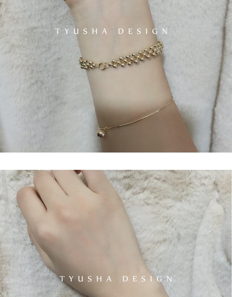 Pu Li original imported from the United States 14K gold-filled gold bean bracelet bracelet for women, super stylish and non-fading, clean hand circumference 13cm