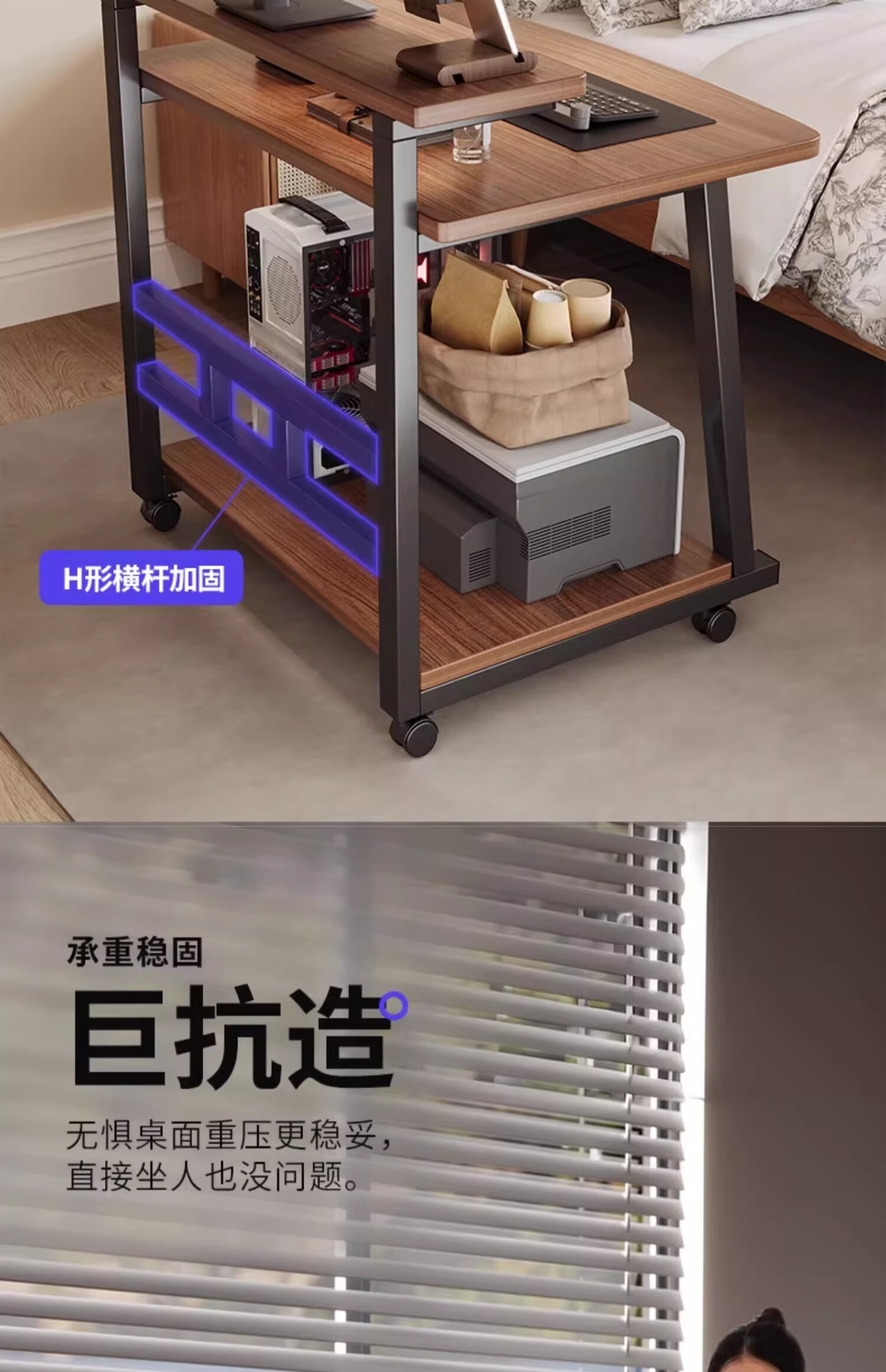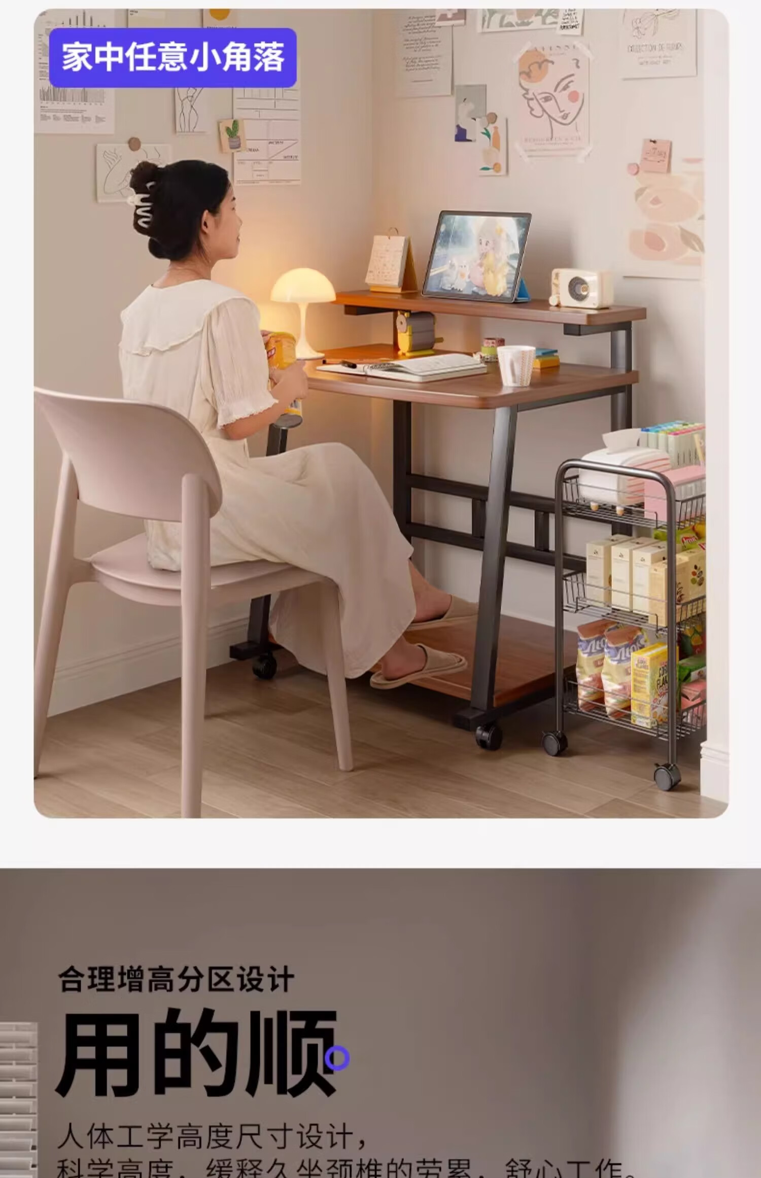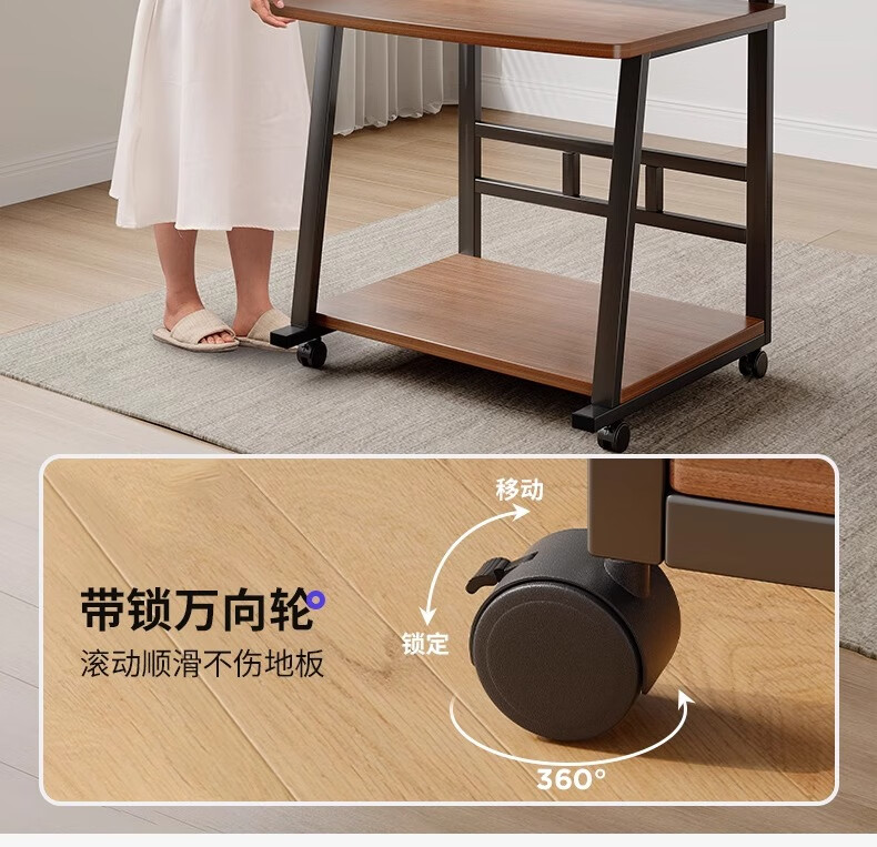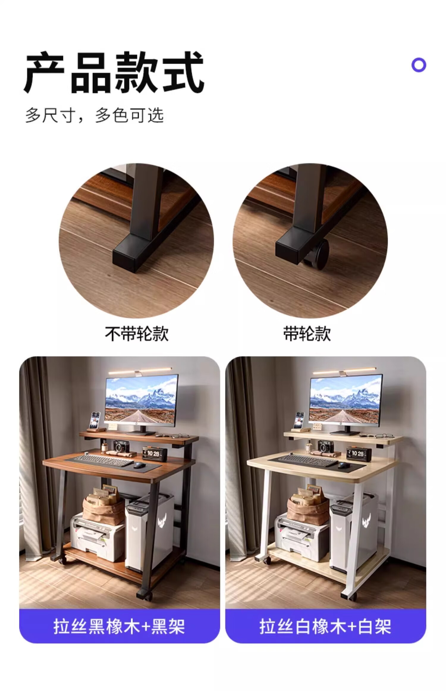 Mansfield small computer desktop table and chair combination movable bedside table bedroom home desk brushed black + black frame with wheels - store manager recommended 60*58*77cm