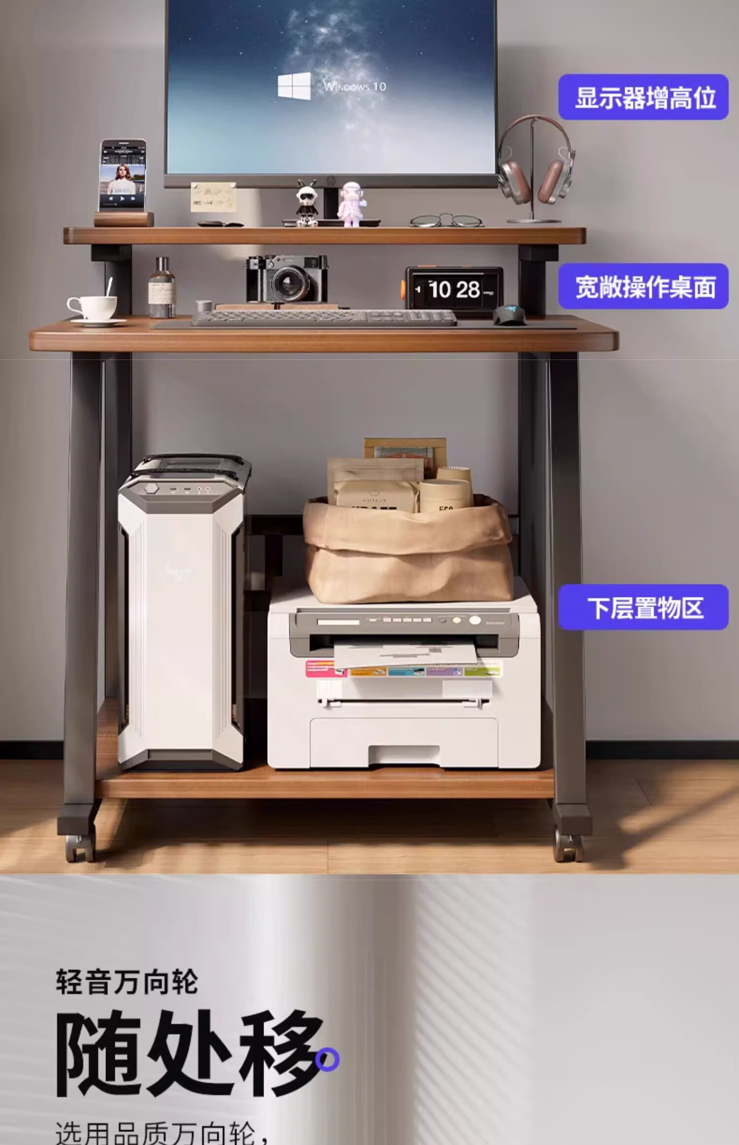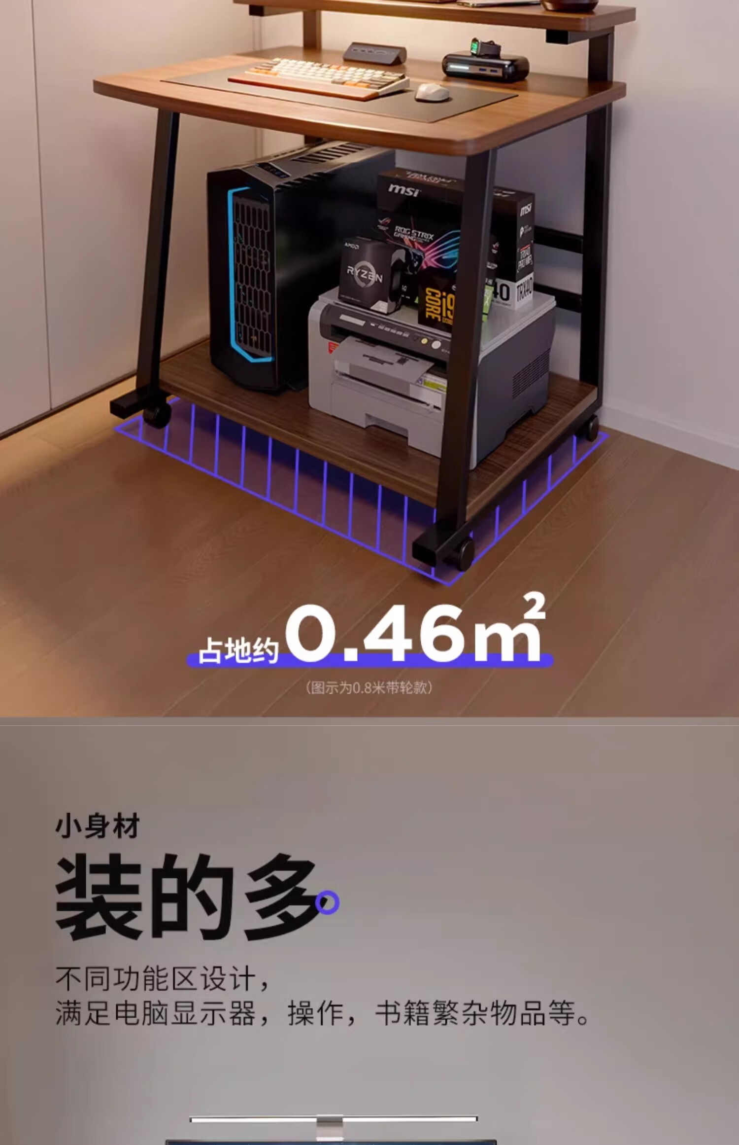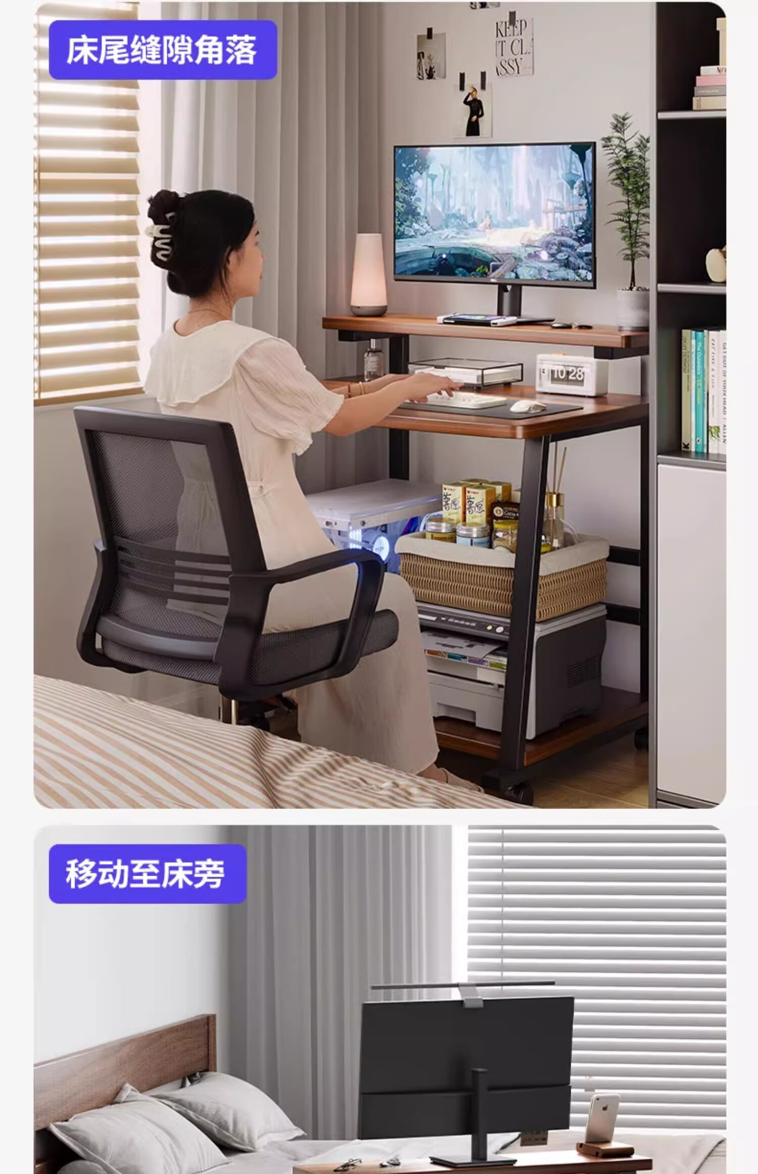 Mansfield small computer desktop table and chair combination movable bedside table bedroom home desk brushed black + black frame with wheels - store manager recommended 60*58*77cm