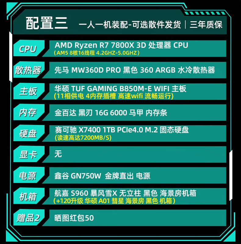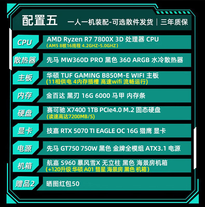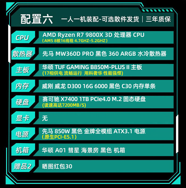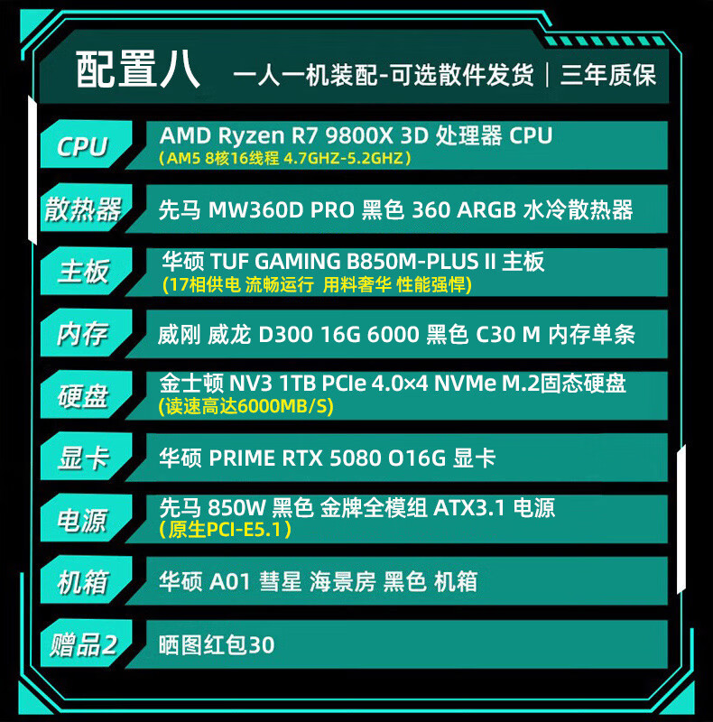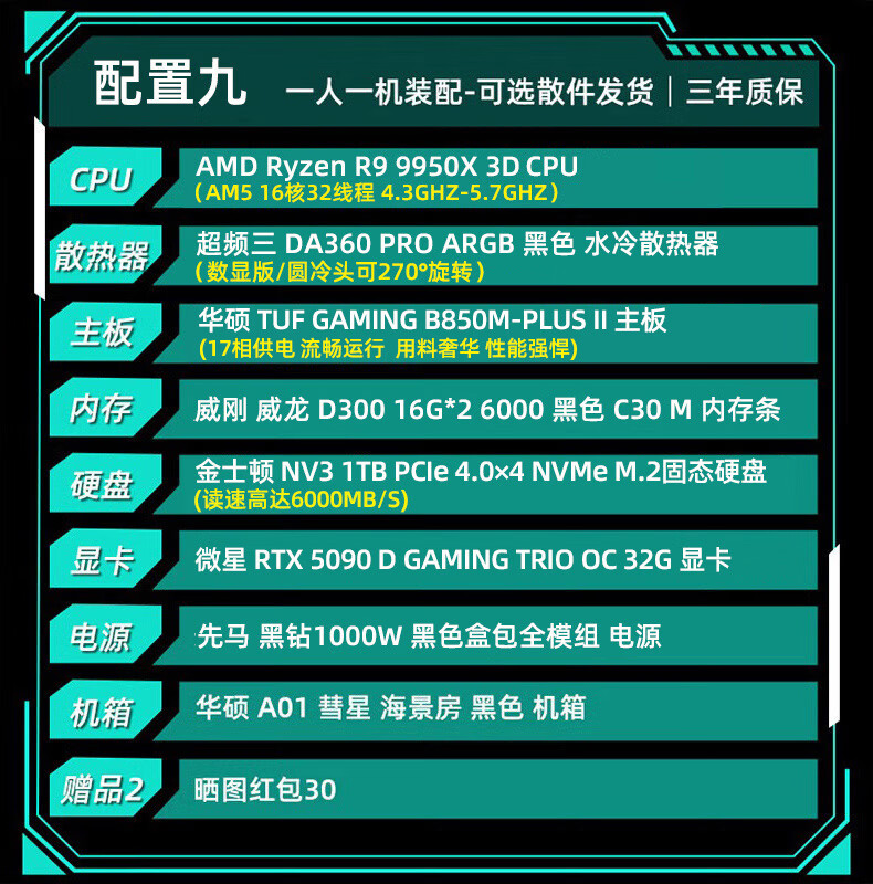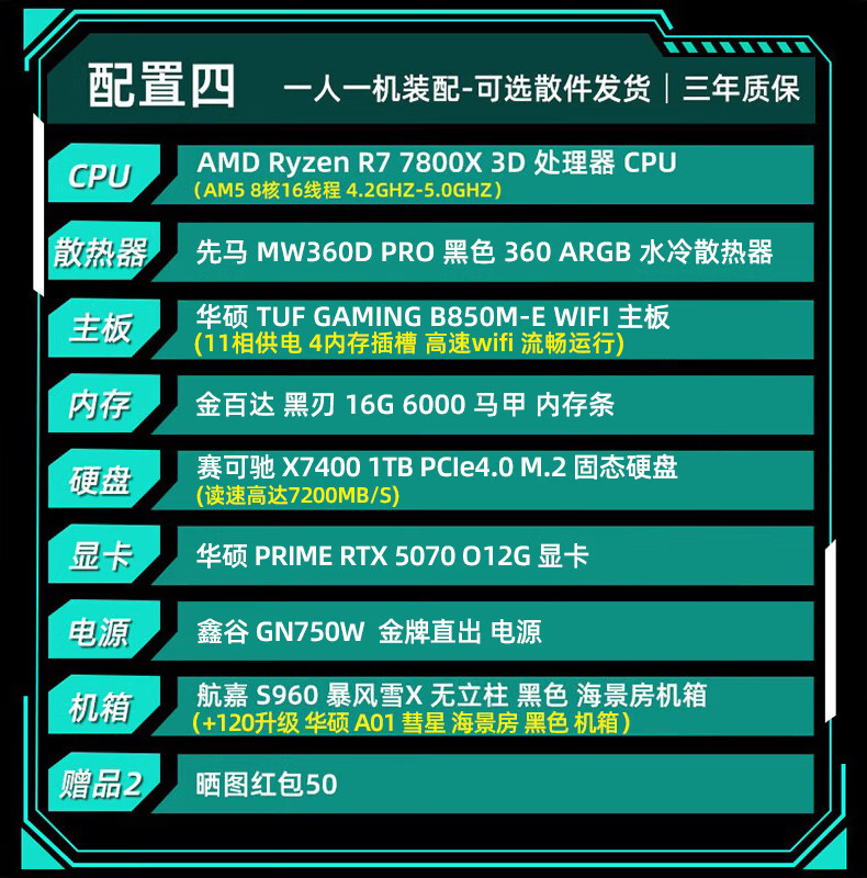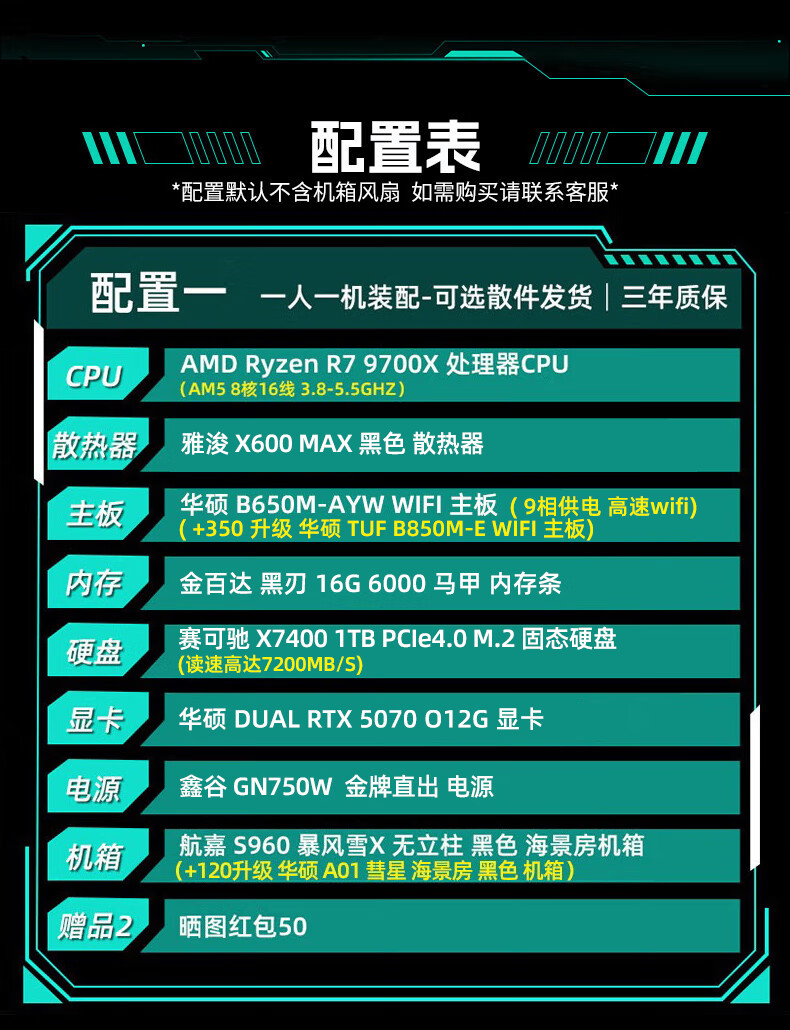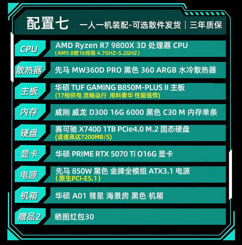ASUS Baitiao 24-issue interest-free AMD9700X/7800/9800X3D assembled computer ROG family bucket 5070ti thousand frames e-sports 5070 complete machine DIY host 5080 configuration two R7 9700X+5070Ti graphics card
