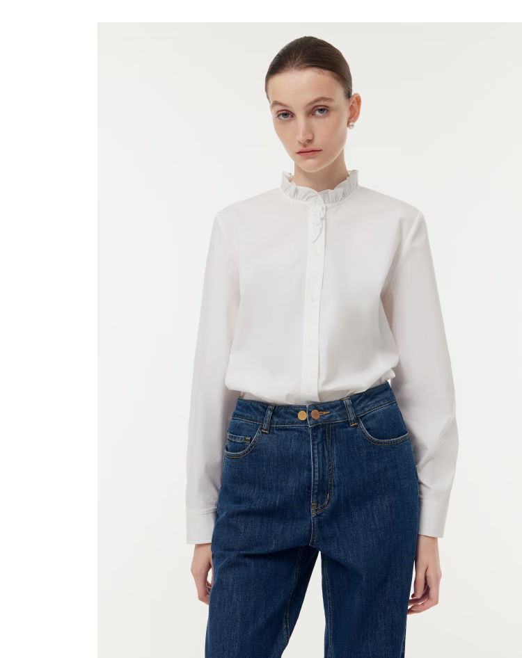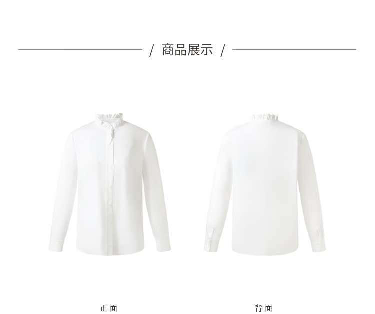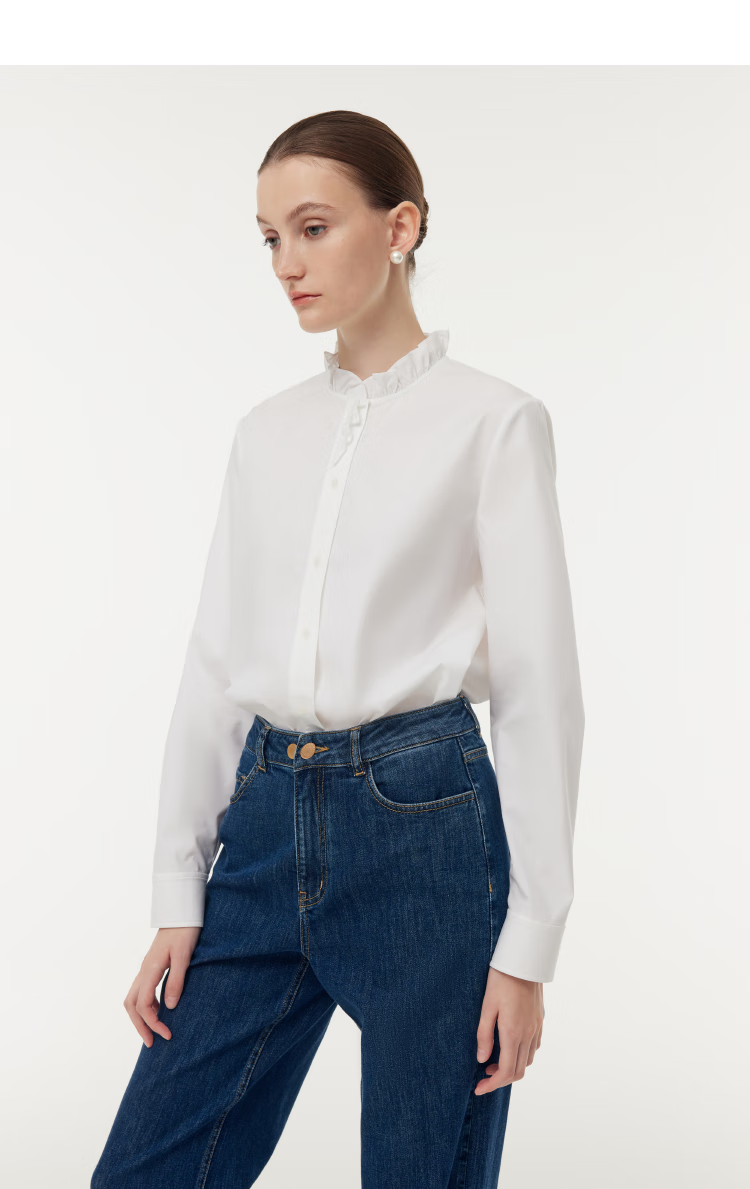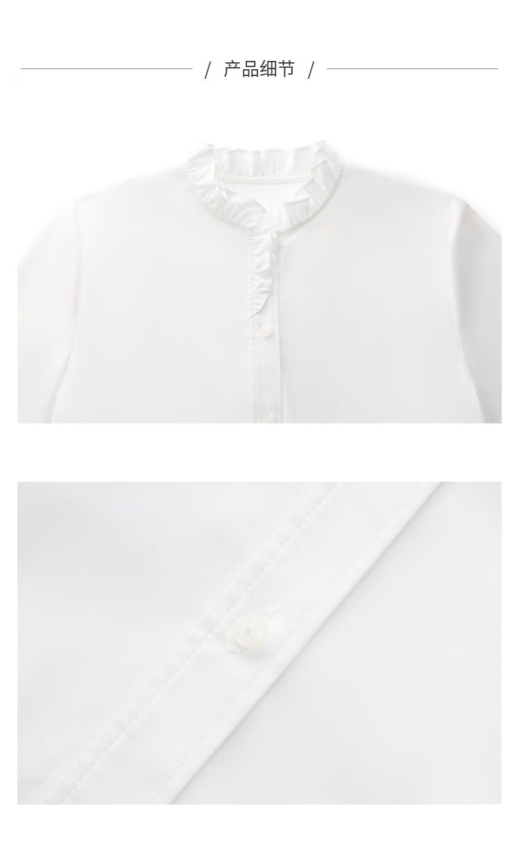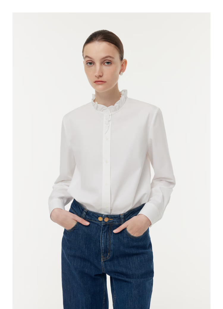 Gloria women's high-end ruffled light luxury long-sleeved stand-up collar white shirt shirt 1E1C3E050 03W original white XS