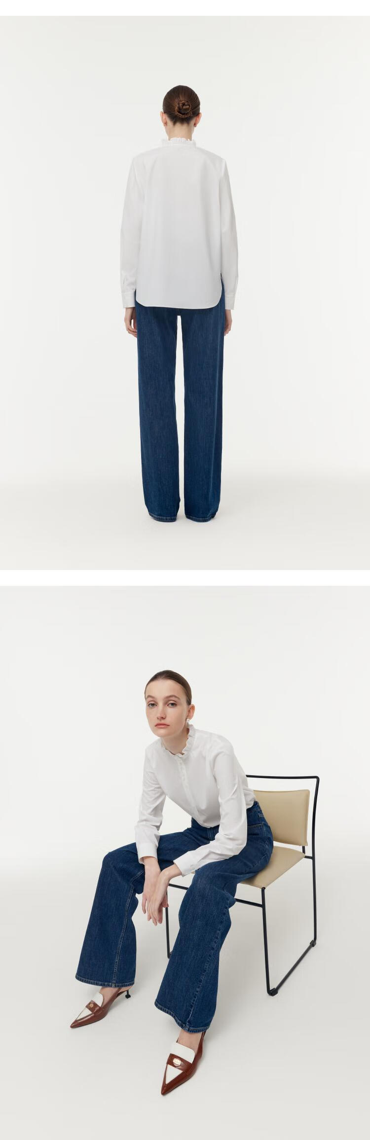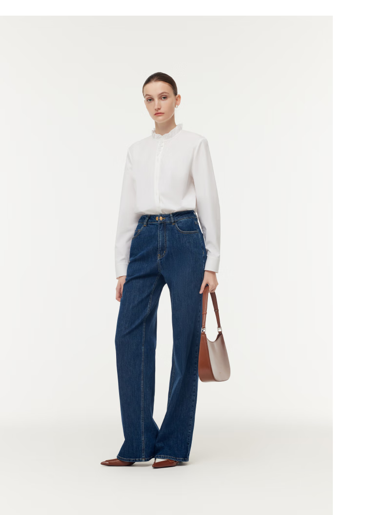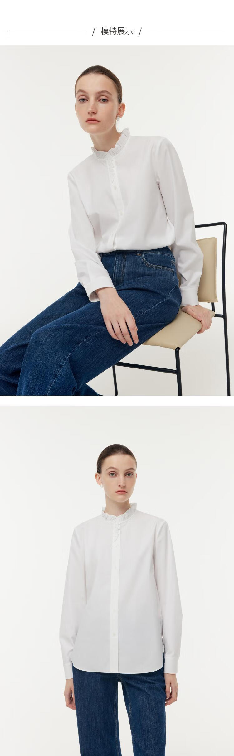 Gloria women's high-end ruffled light luxury long-sleeved stand-up collar white shirt shirt 1E1C3E050 03W original white XS