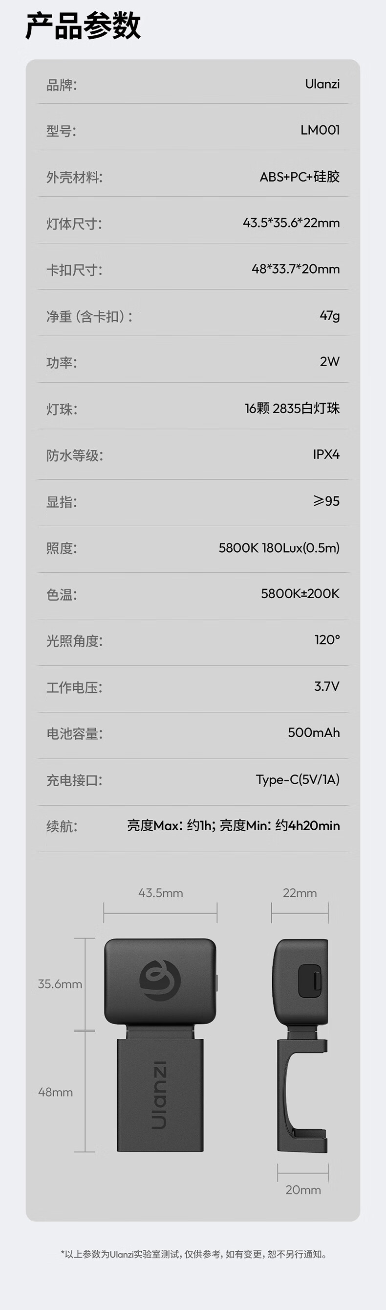 Ulanzi excellent basket LM001 Pocket3 special magnetic fill light pocket Osmo 3 camera monochrome photography light DJI sports camera expansion accessories Pocket3 magnetic small light