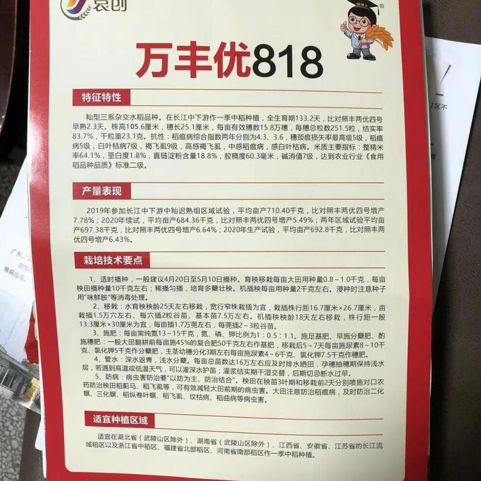 万丰优818巨穗稻稳产杂交水稻种再生稻超抗倒抗病耐热米质好 袁创稻/约460克一袋/ 23000粒*1袋(万丰优818)
