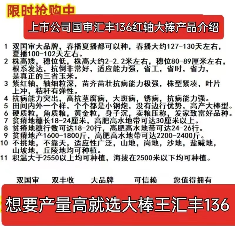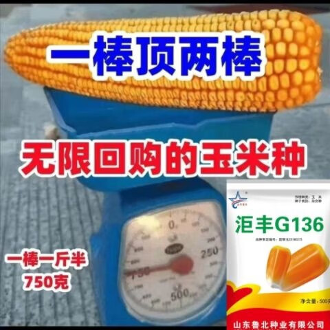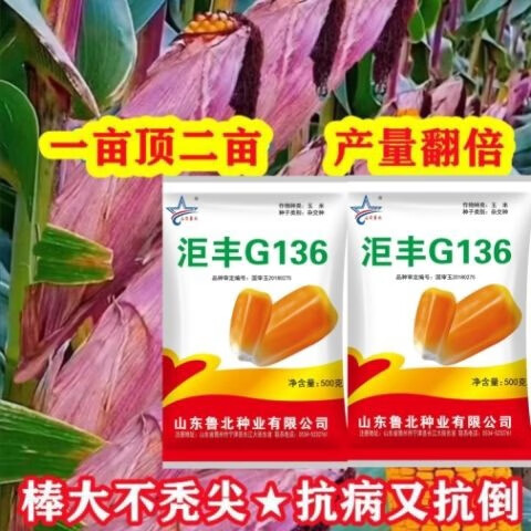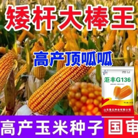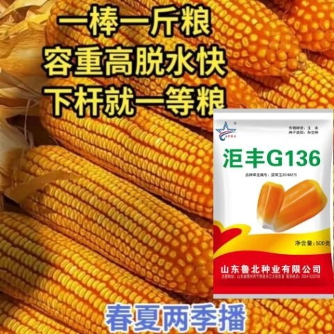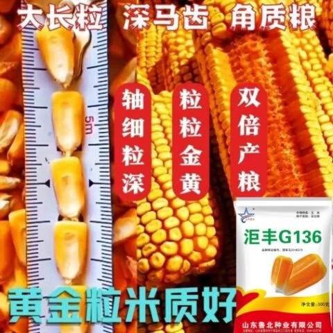 Golden grain 136 corn seeds, stable yield, large sticks, short stems, disease resistance, lodging resistance and drought resistance, corn grains in the north and south are in stock. The national approval ton yield is 136 per acre (3Jin Jin is equal to 0.5 kilograms)