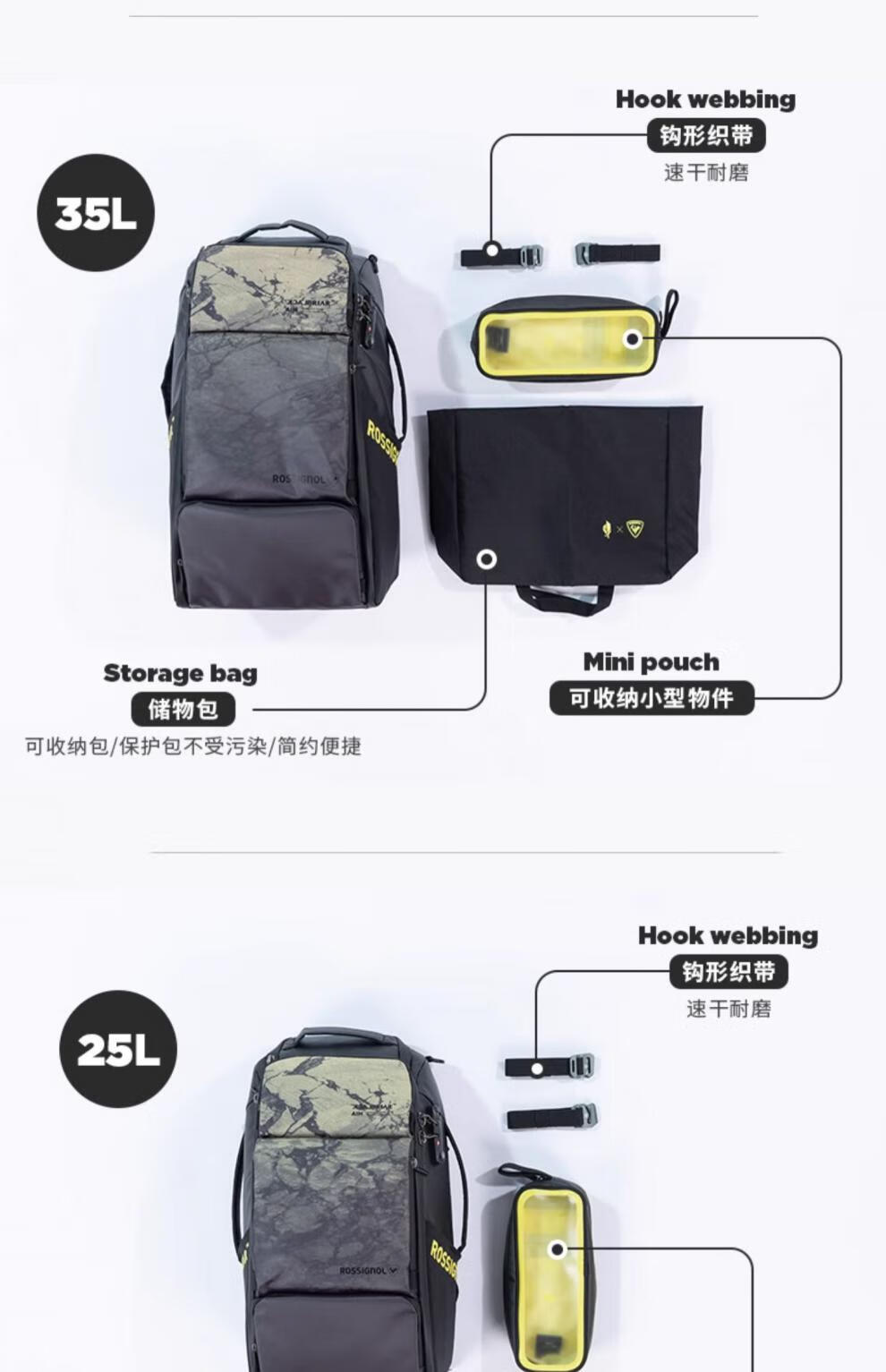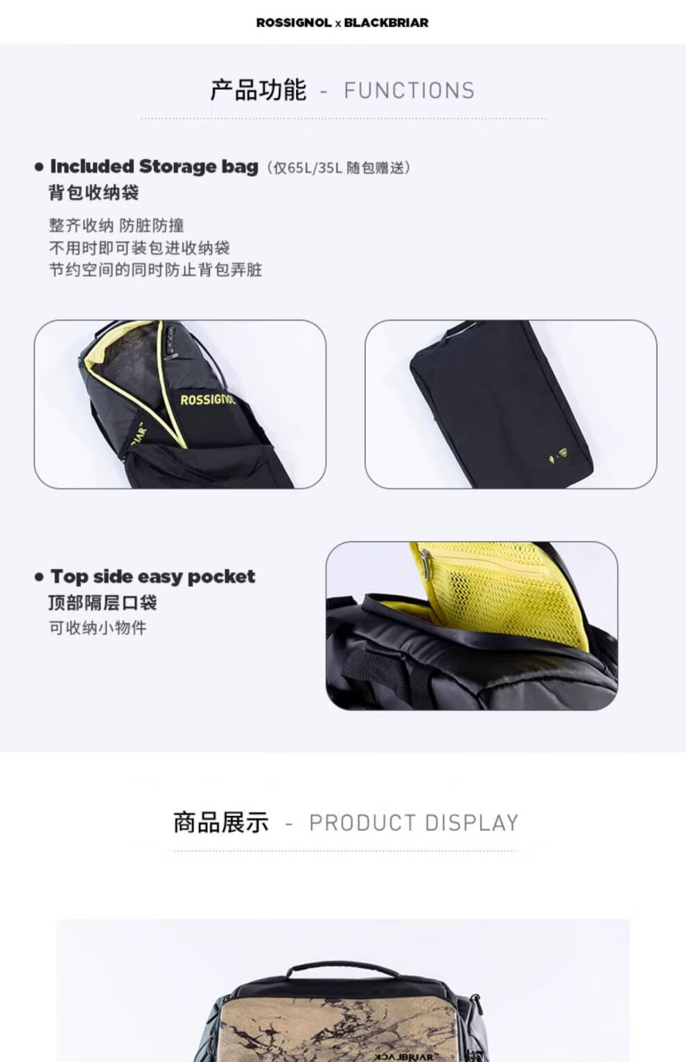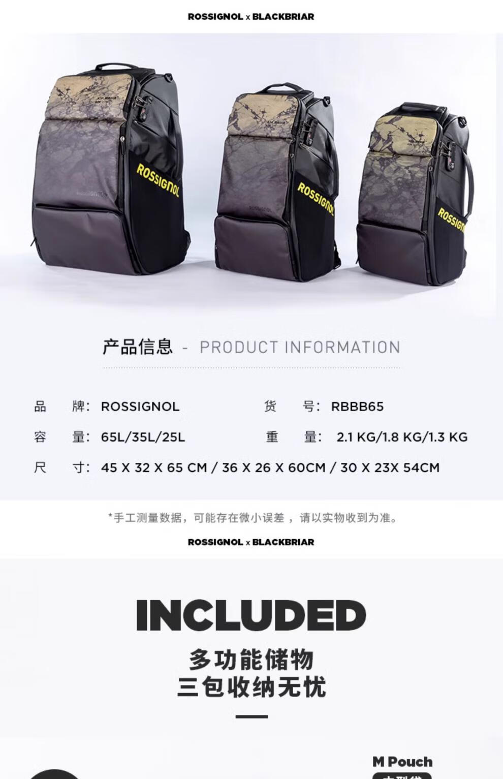 ROSSIGNOL Golden Rooster Ski Backpack BLACKBRIAR Black Thorn Joint Style Double Shoulder Single Board Storage Bag Official Black 25L