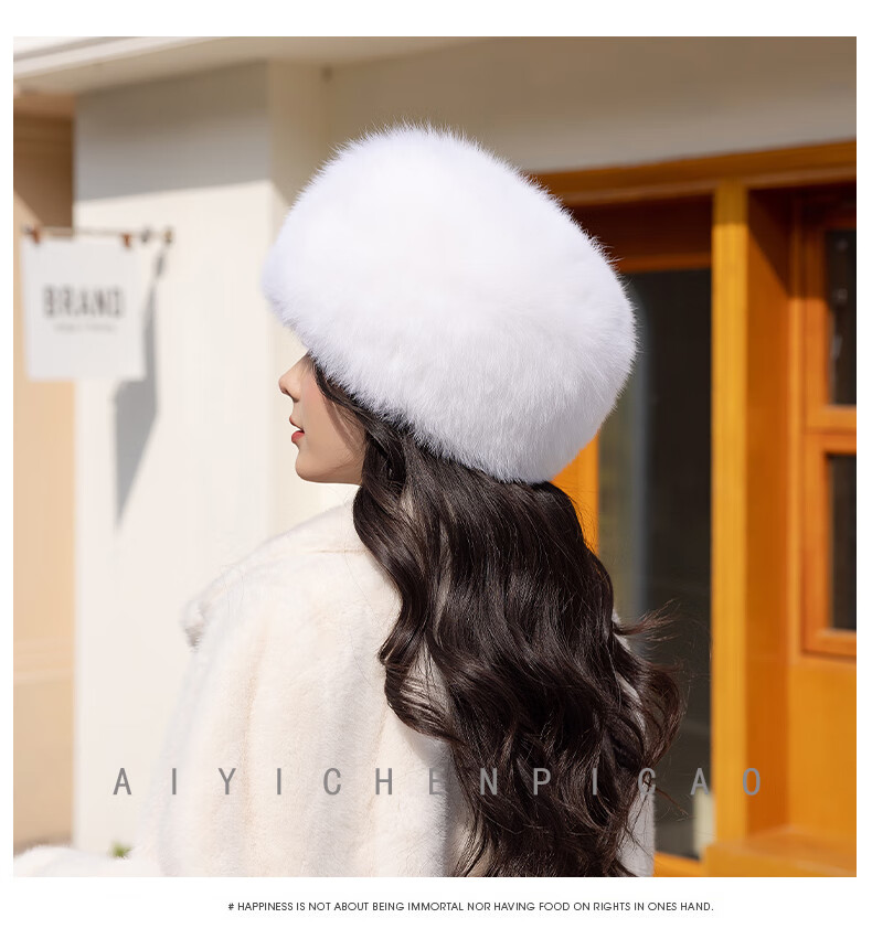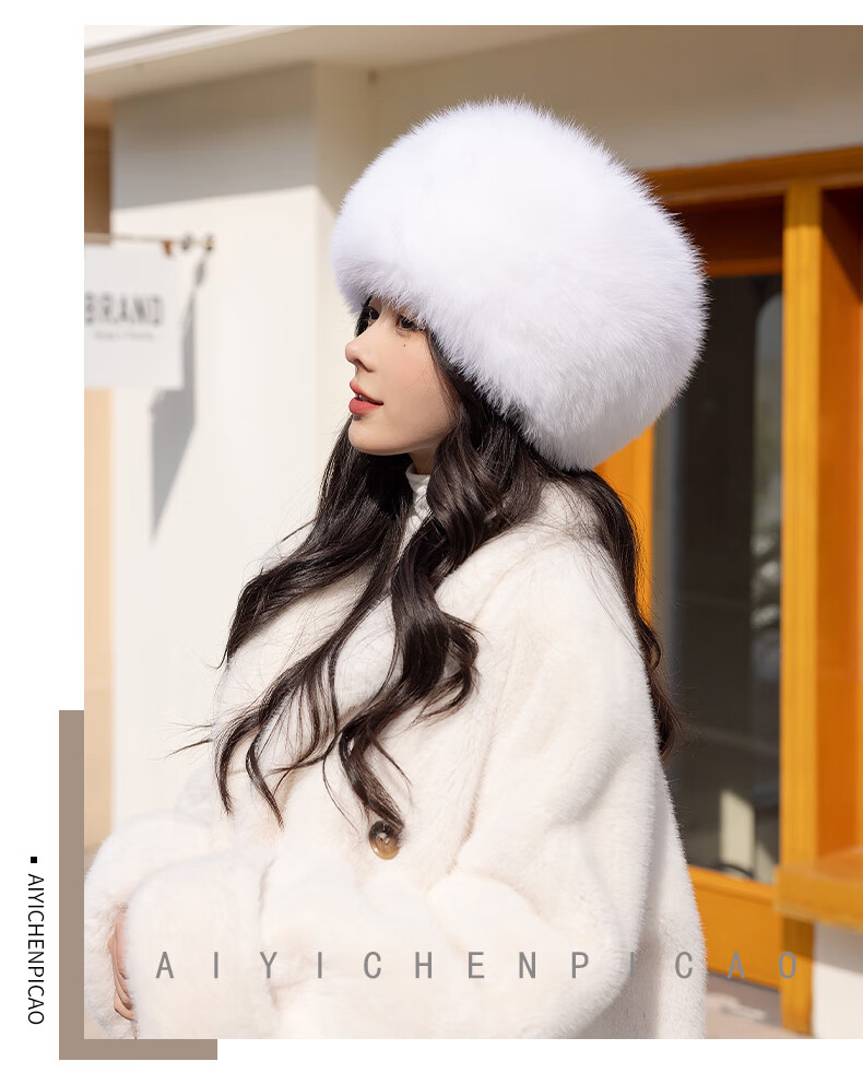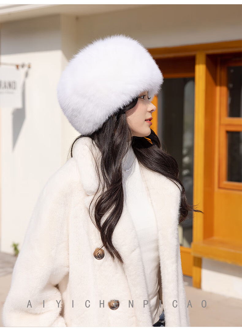 Ai Yichen fox fur hat women's winter Mongolian raccoon fur Baotou hat warm fur genuine leather ear protection Northeast large fur hat blue fox true color L (58-60cm)