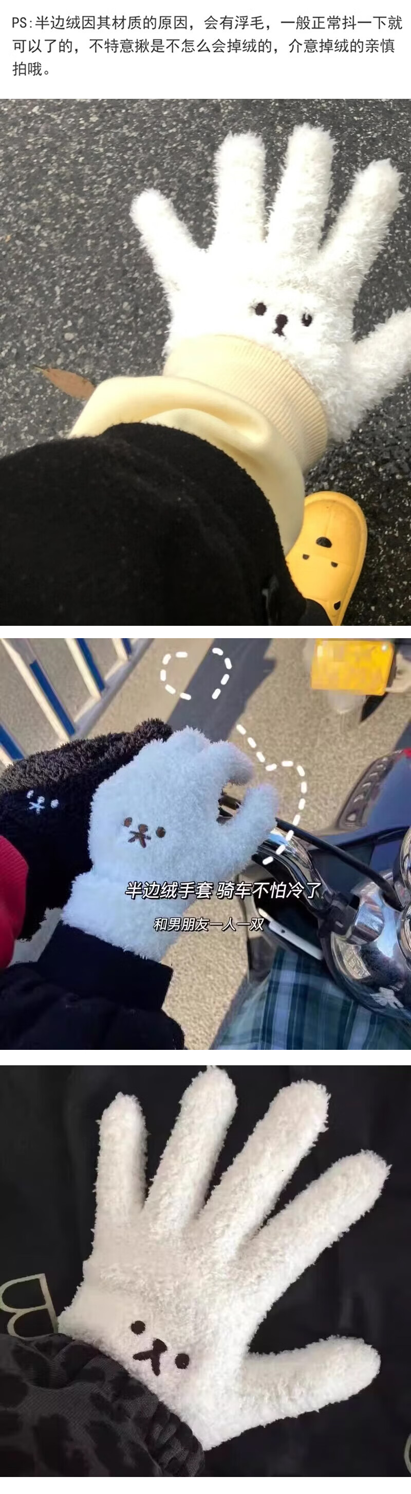 Nanmu Bear Gloves Women's Winter Cold-proof and Warm Cute Cotton Gloves Girls' Winter Plush Velvet Men's Cycling Windproof and Freeze-proof Bear Gloves White